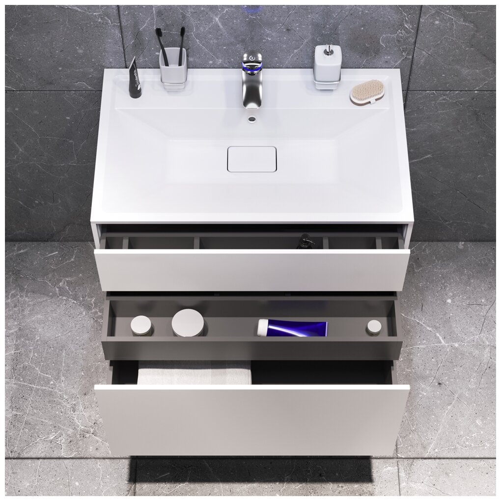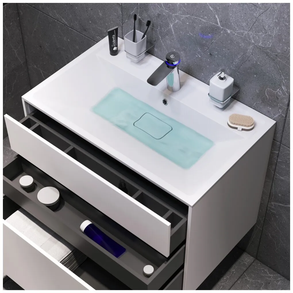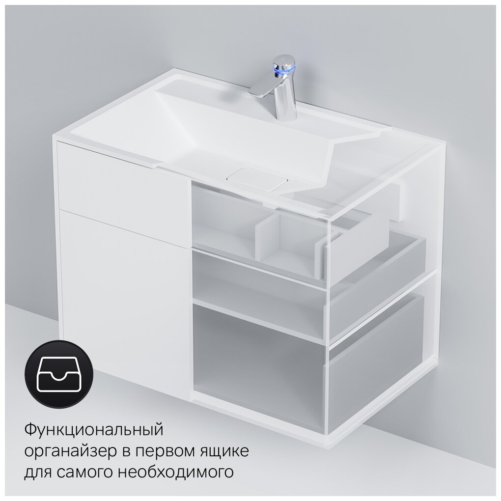 Мебель Inspire V2.0 – идеальный выбор для тех кто привык к динамичному стилю жизни ценит абсолютный комфорт и минимализм в интерьере. Вариативность размеров и цветов дает неограниченные возможности для создания стильного дизайна ванной комнаты с учетом ее планировки и индивидуальных предпочтений владельца. Ультратонкая раковина эргономичной формы с покрытием из мрамора идеально сочетается с мебельной базой. Инновационный подход к хранению: мы разработали дополнительный ящик который выдвигается на 12 см и обеспечивает быстрый доступ к самым необходимым вещам. Экологически чистые и долговечные полиакриловые эмали: специальная технология покраски в 7 слоев превосходит технологию нанесения автоэмали у ведущих немецких марок и обеспечивает насыщенный цвет в течение всего срока службы. Теперь в самых актуальных матовых оттенках