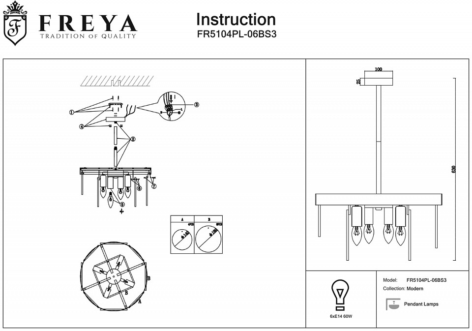 Люстра на штанге Freya Porto FR5104PL-06BS3