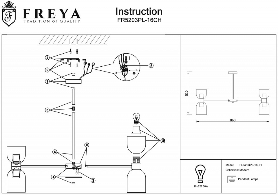 Люстра на штанге Freya Savia FR5203PL-16CH
