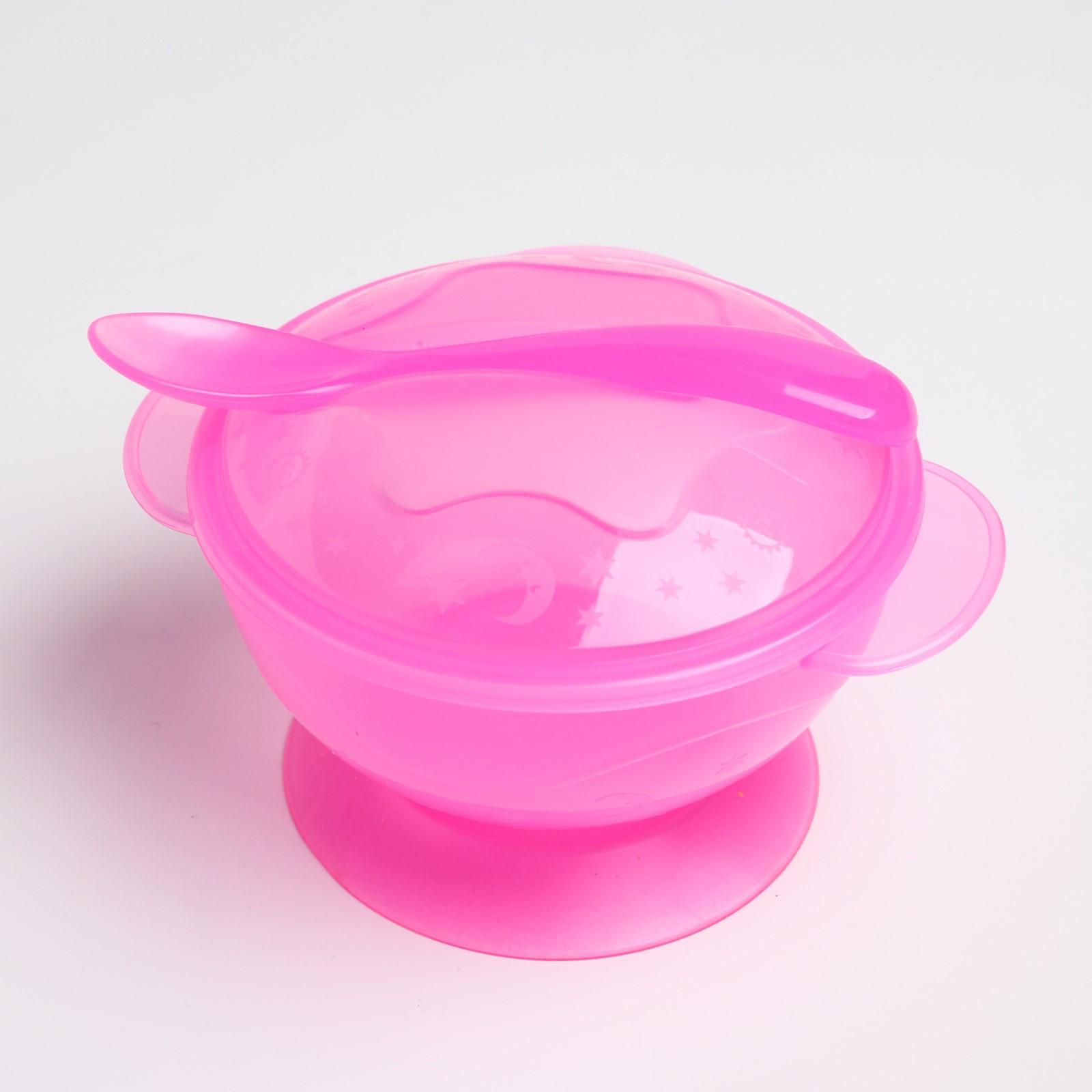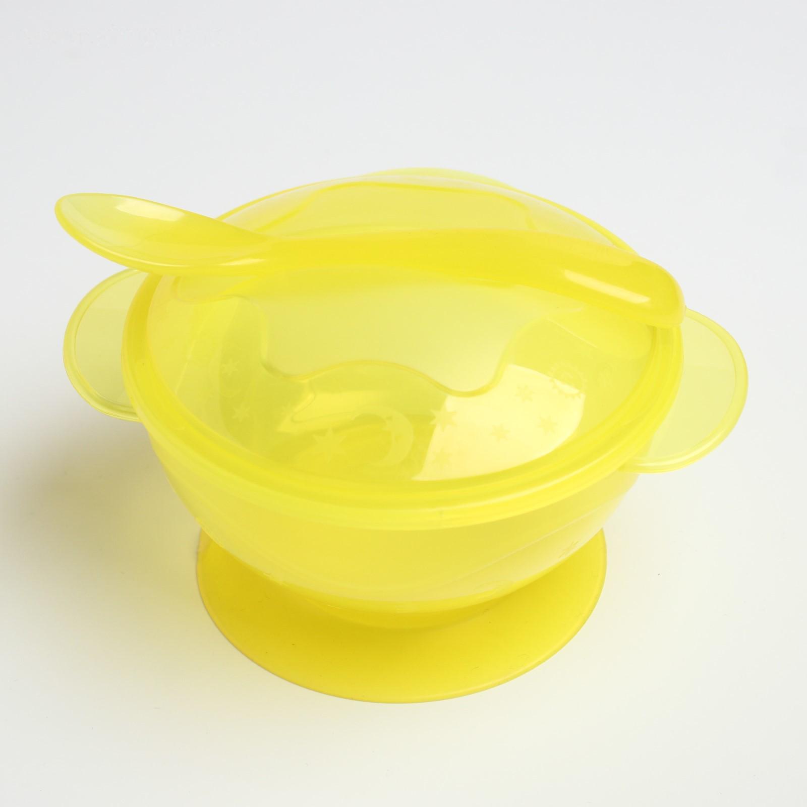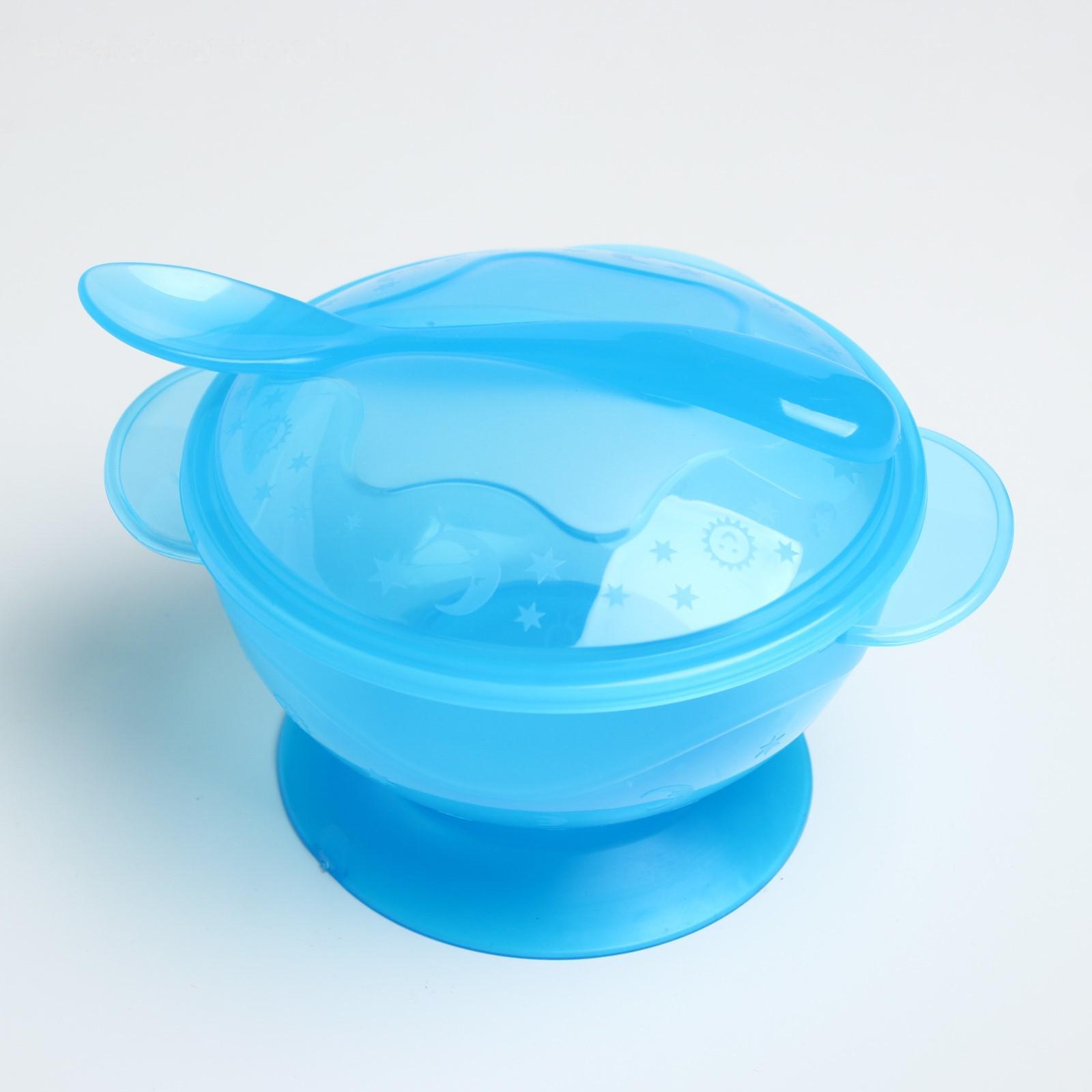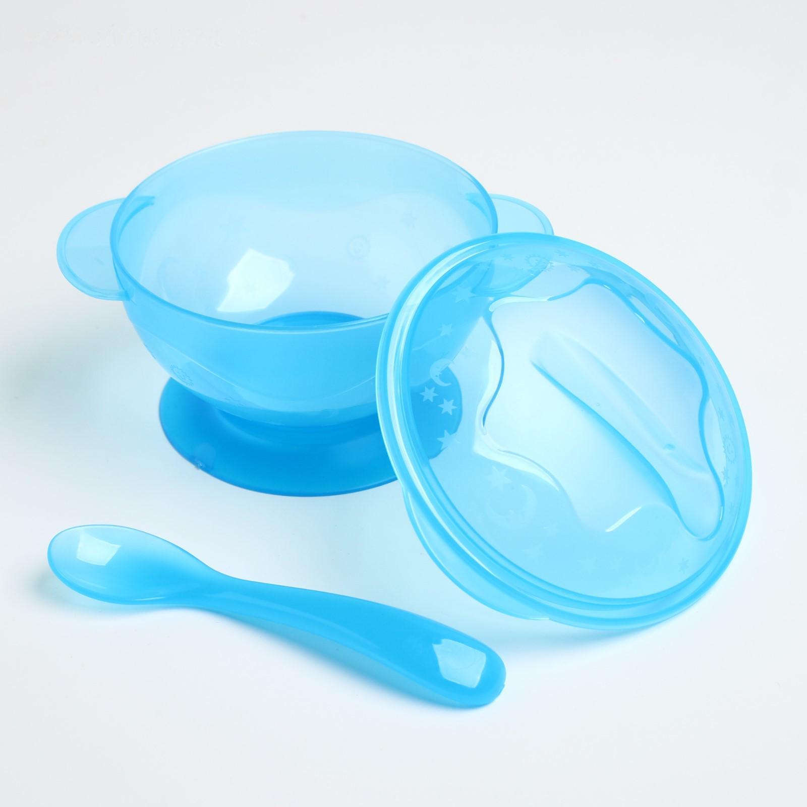 Набор детской посуды, 3 предмета: миска на присоске 330 мл, крышка, ложка, от 5 мес., цветаСЮРПРИЗ