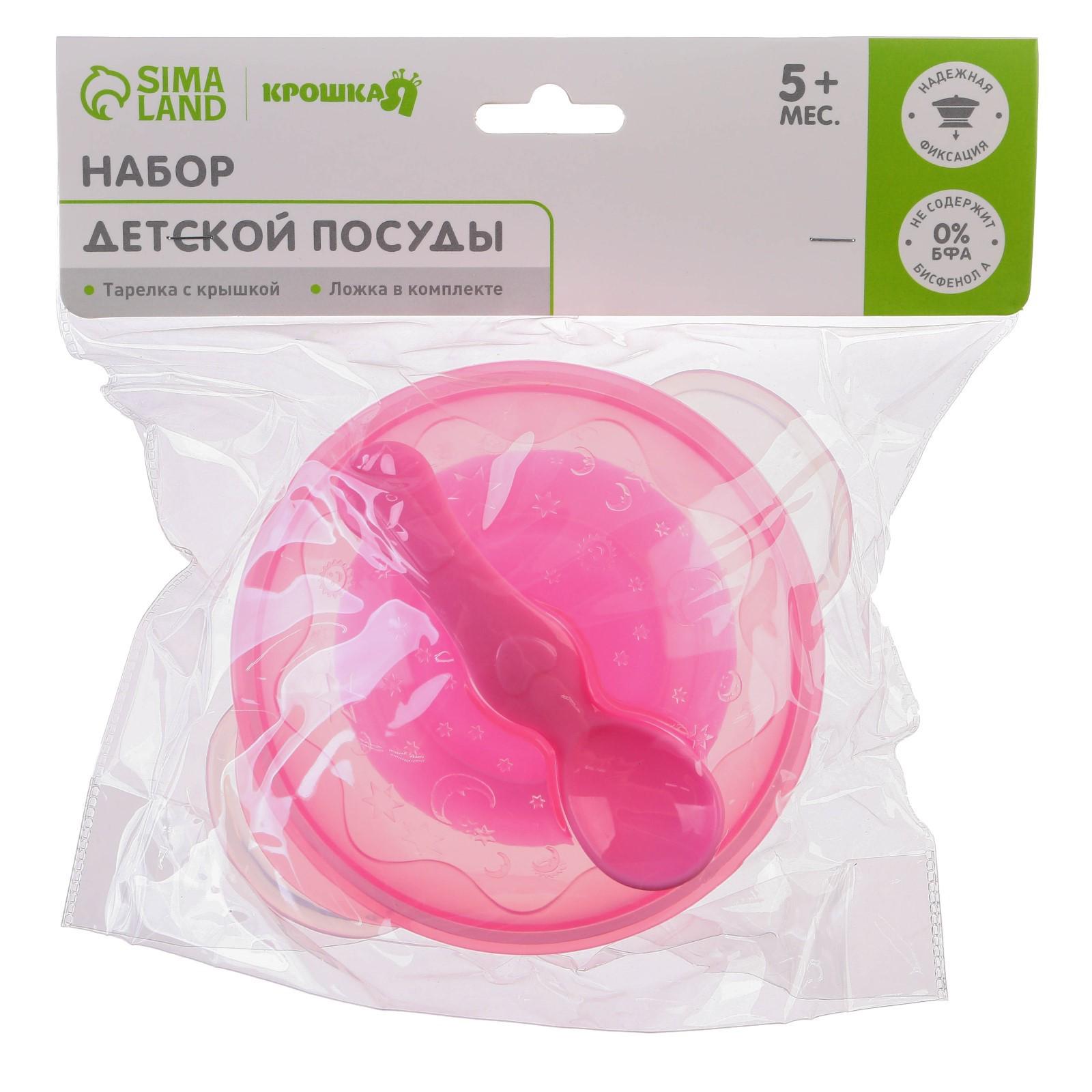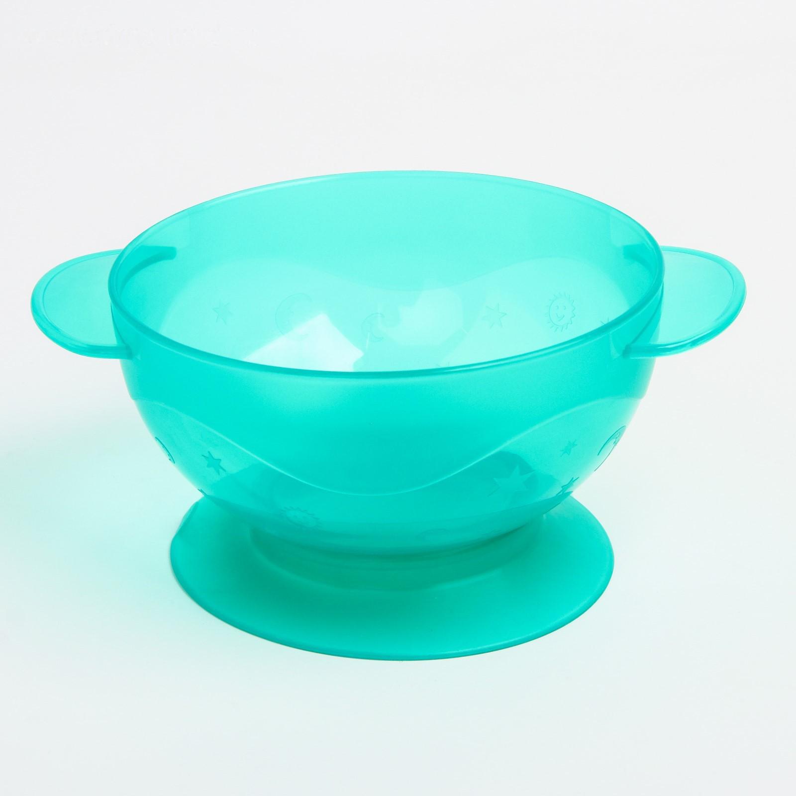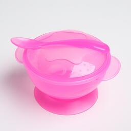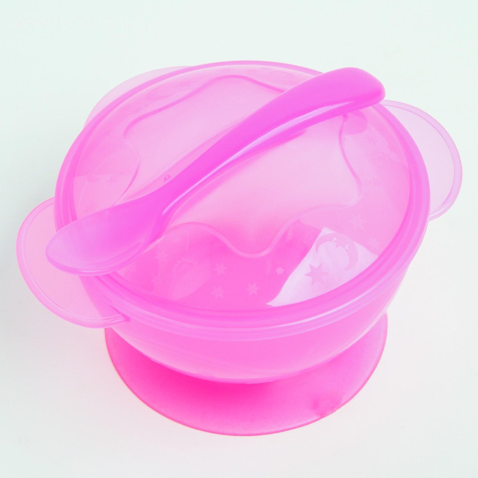Набор детской посуды, 3 предмета: миска на присоске 330 мл, крышка, ложка, от 5 мес., цветаСЮРПРИЗ