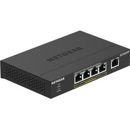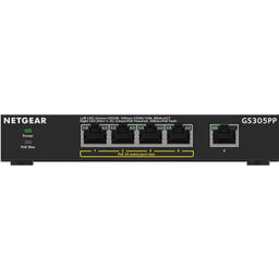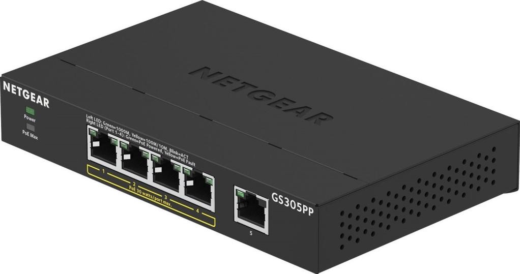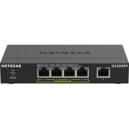 Некерований гігабітний комутатор N ETGEAR GS 3 05 PP з 5 портами Gigabit Ethernet, зокрема 4 порти PoE +, з загальним бюджетом потужності 83 Вт і фірмовою технологією автоматичного балансу потужності NETGEAR FlexPoE.