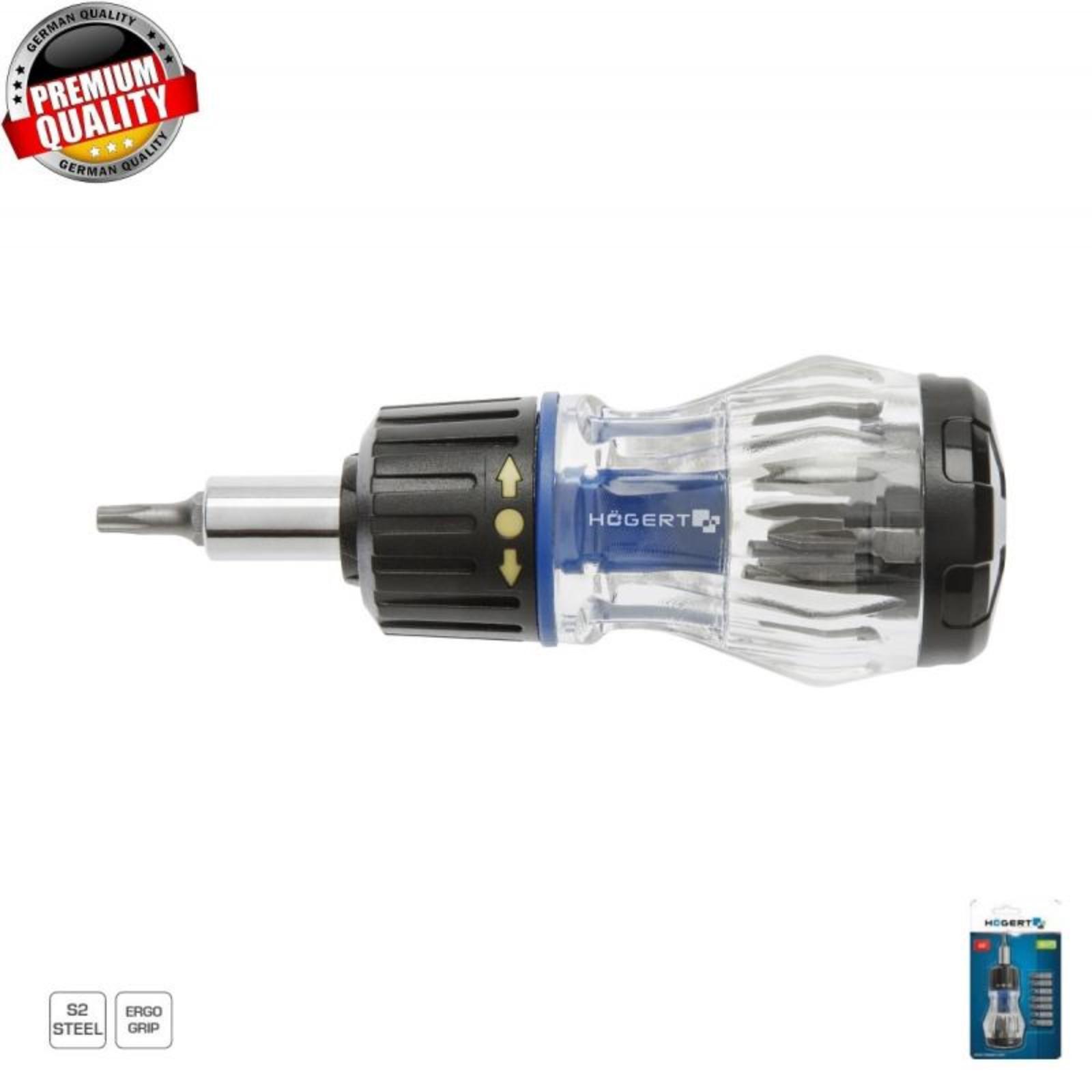 Отвертка с реверсивной рукояткой HOEGERT TECHNIK HT1S214, со сменными насадками 100 мм, 8 шт 93793