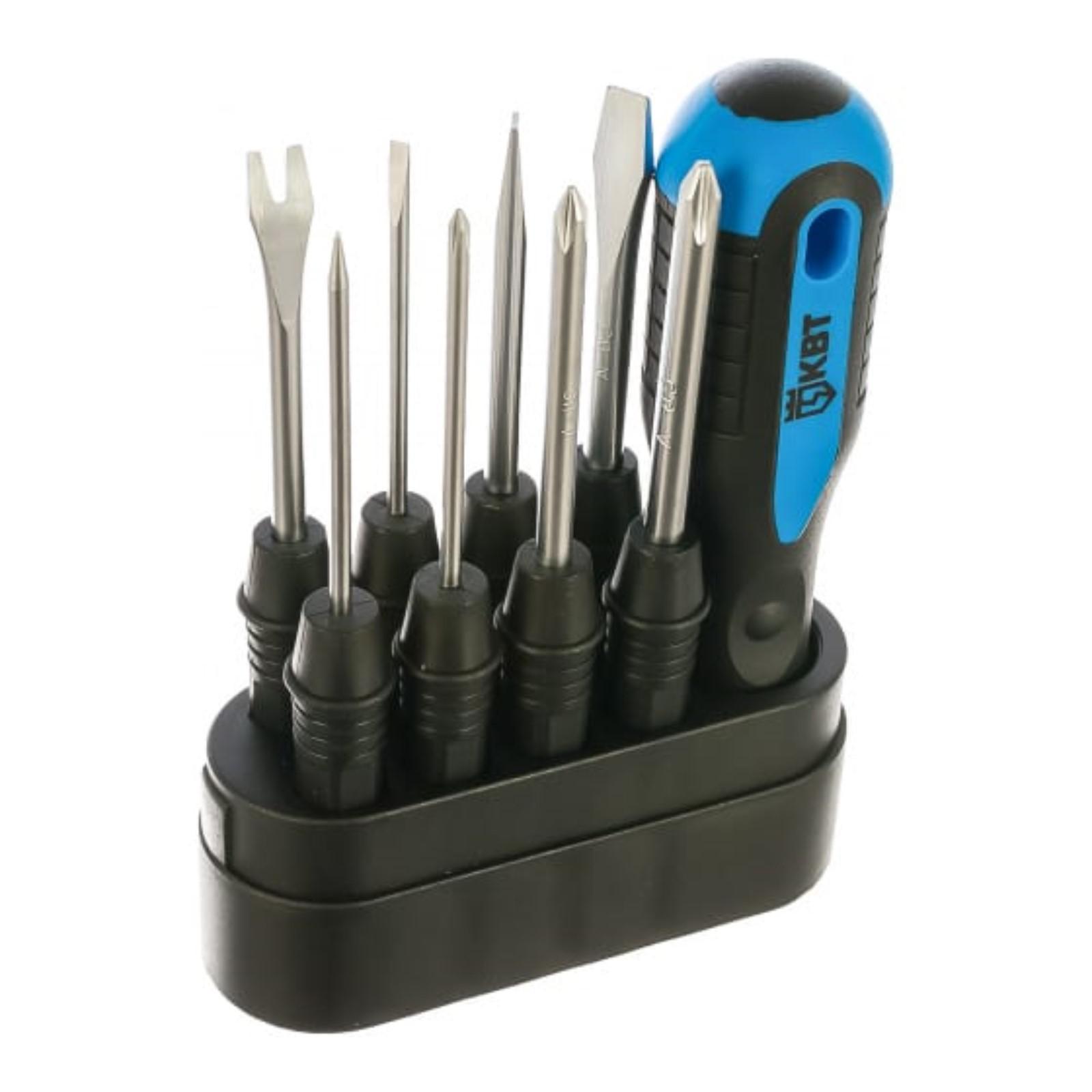 Набор отверток КВТ НО-9 Мастер, со сменными стержнями, 8 насадок, прямая рукоятка