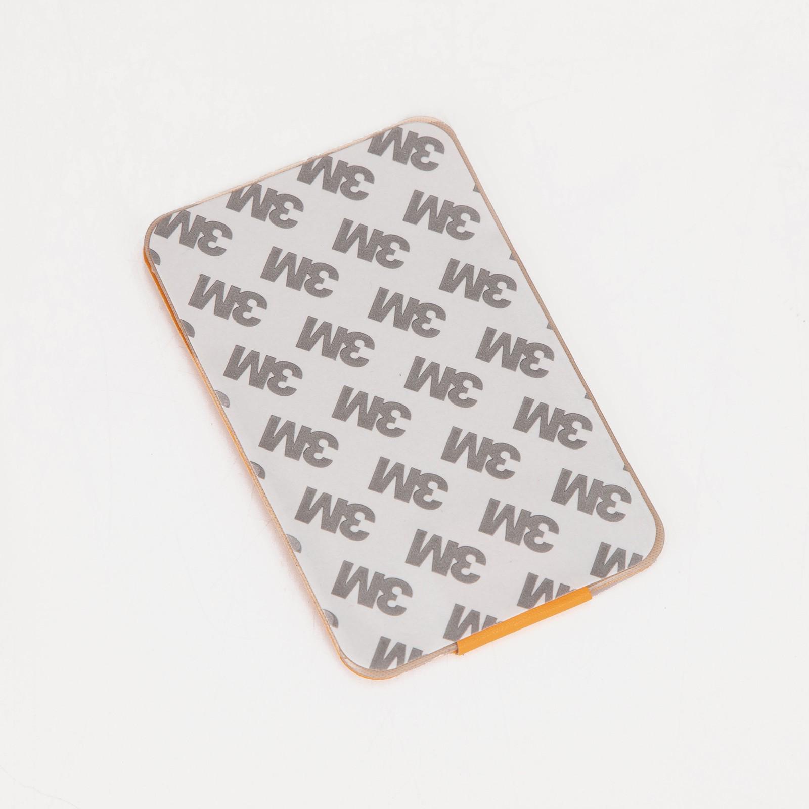 Картхолдер предназначен для хранения банковской карты вместе со смартфоном. Лицевая сторона изделия выполнена из искусственной кожи различных цветов. На задней части расположен липкий слой, благодаря которому картхолдер крепится к телефону.