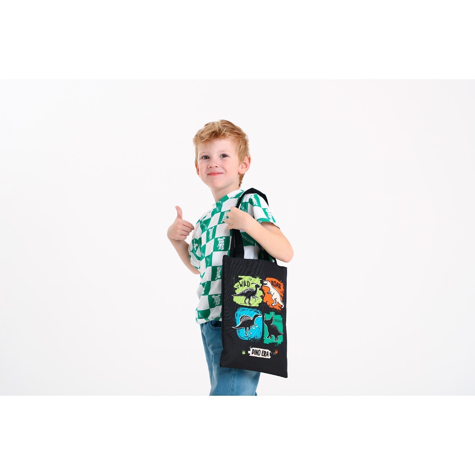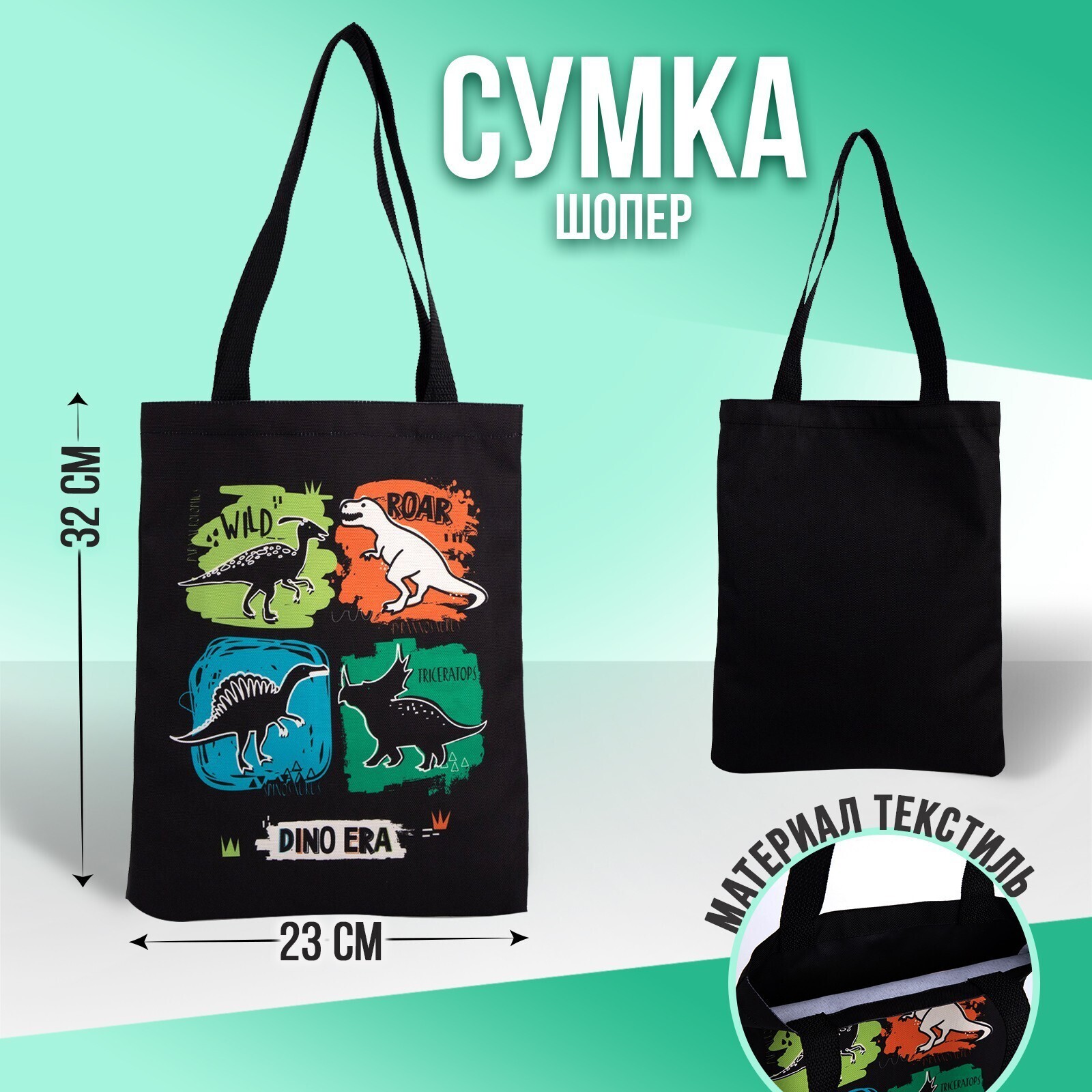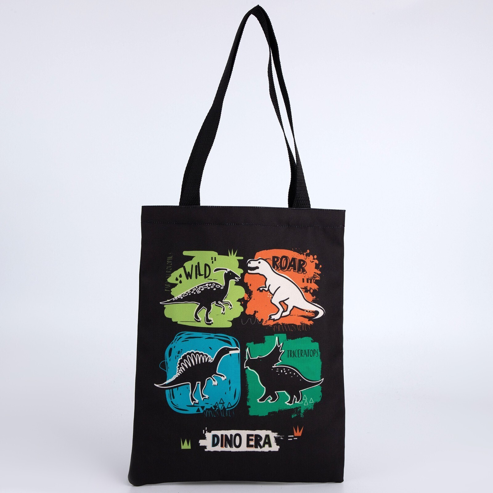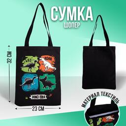 Сумка-шопер детская «Динозавры», 32х25х1 см, без молнии, без подклада, черный