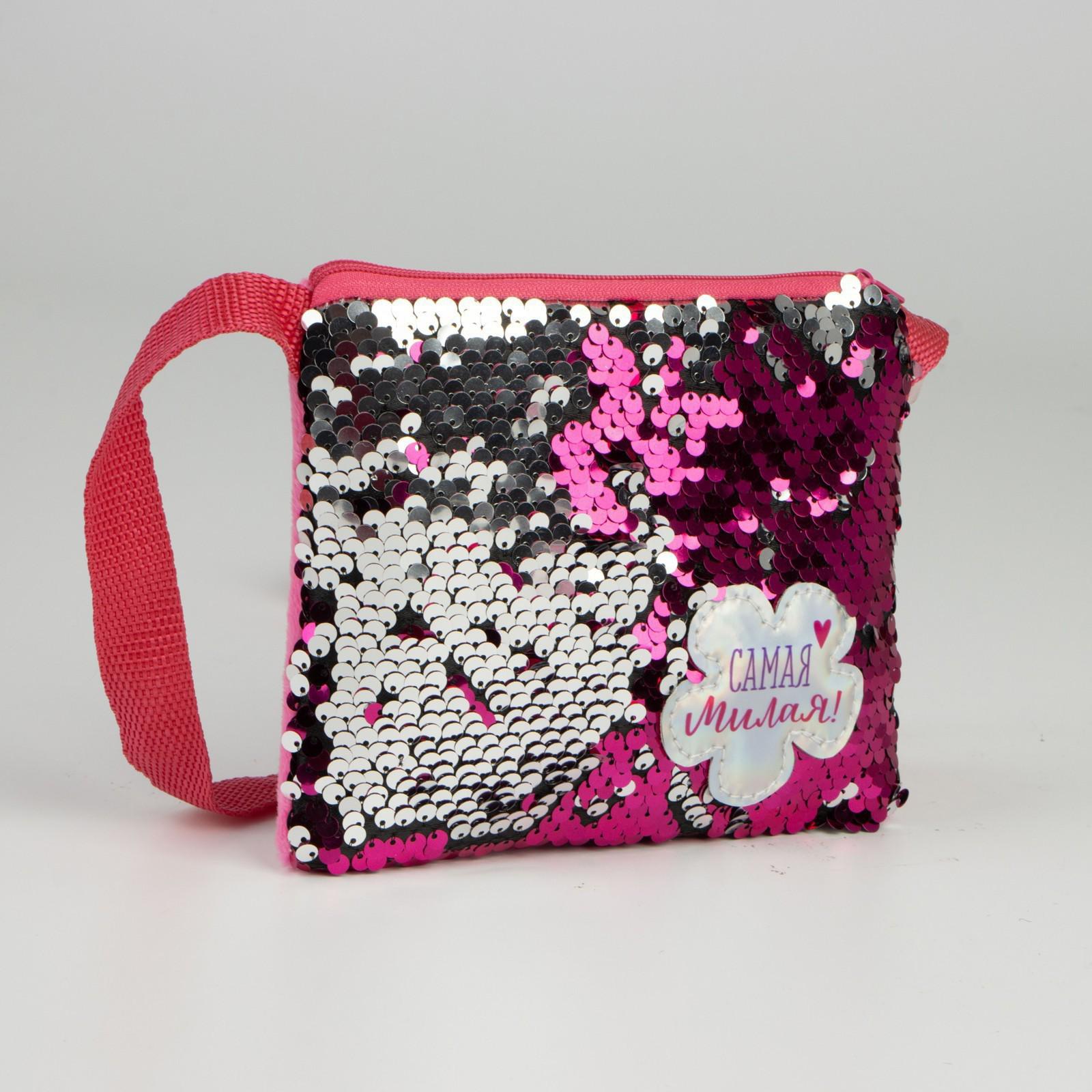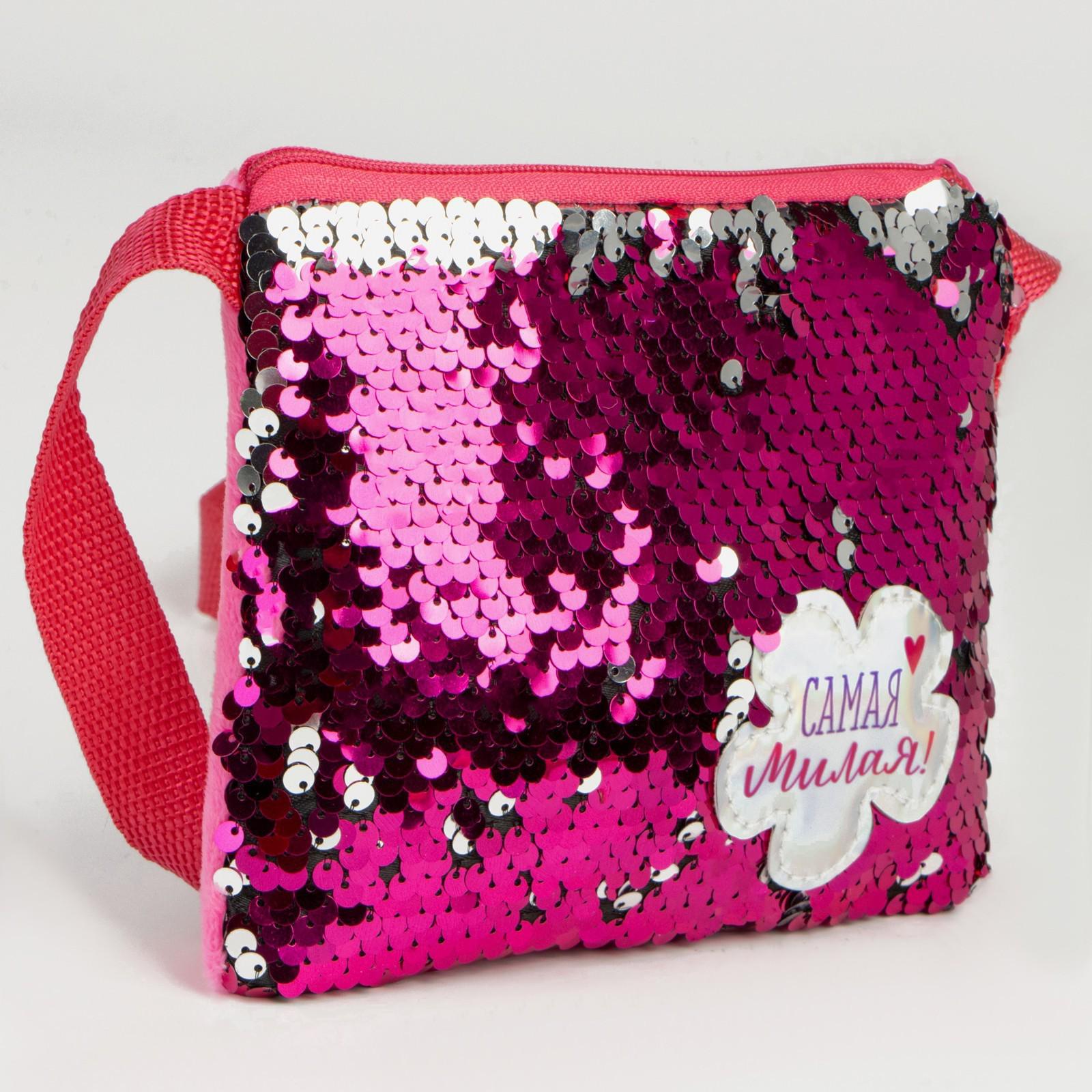 Сумка детская с пайетками Самая милая на молнии, цвет розовый