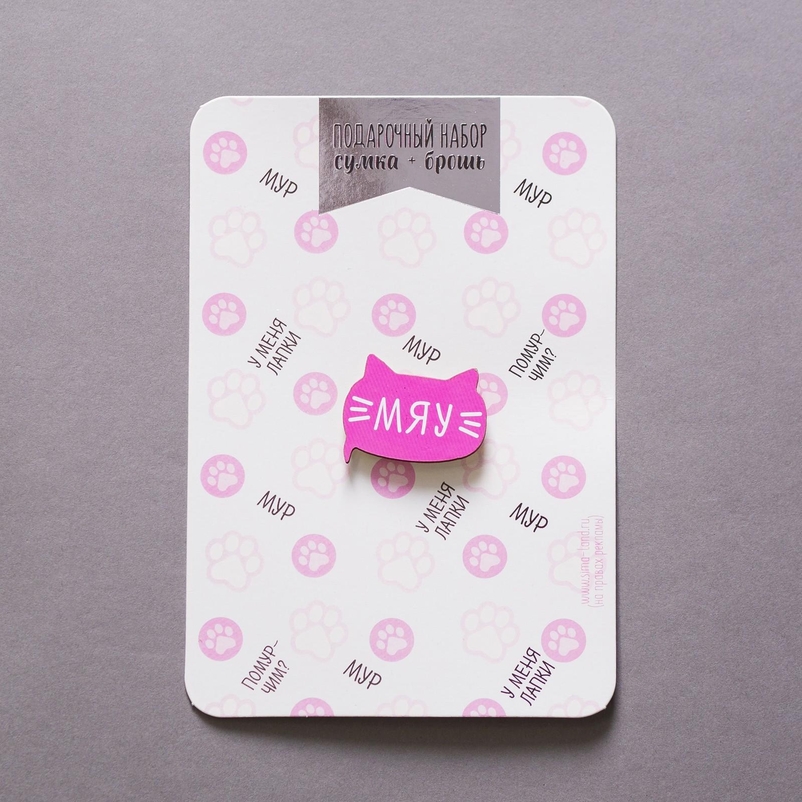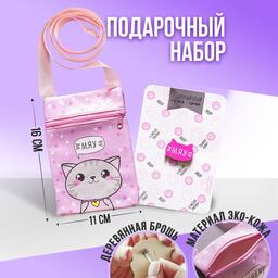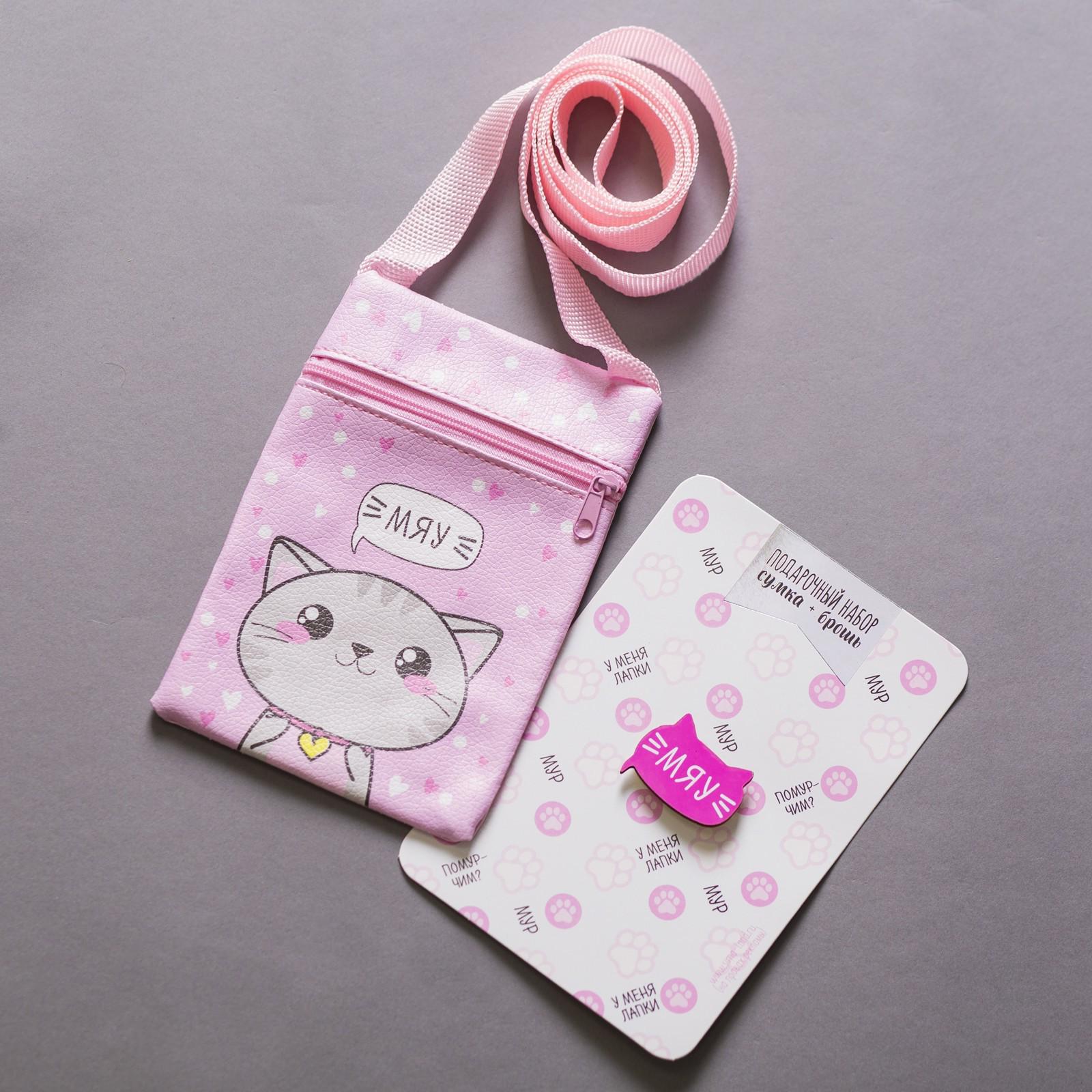 Детский подарочный набор Мяу: сумка+брошь, цвет розовый