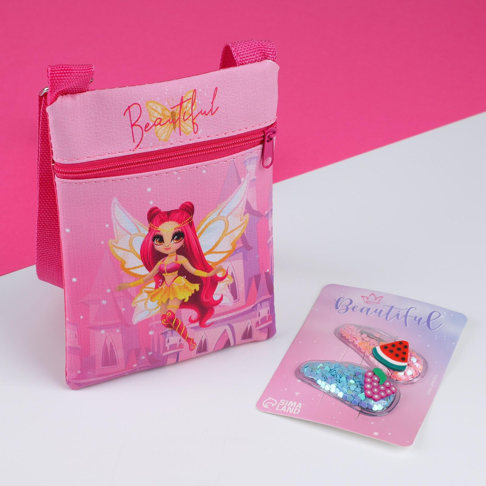 Набор для девочки Маленькая волшебница: сумка и заколки для волос, цвет розовый