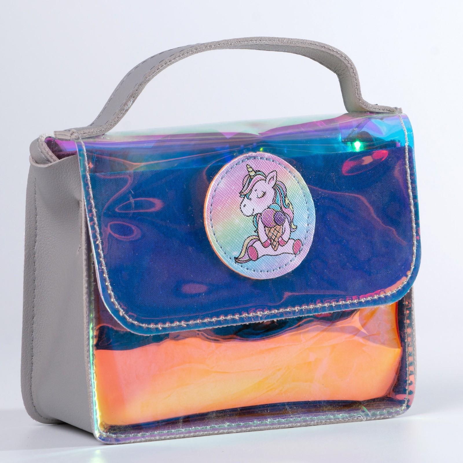 Сумка детская Unicorn на клапане, цвет серый/перламутровый