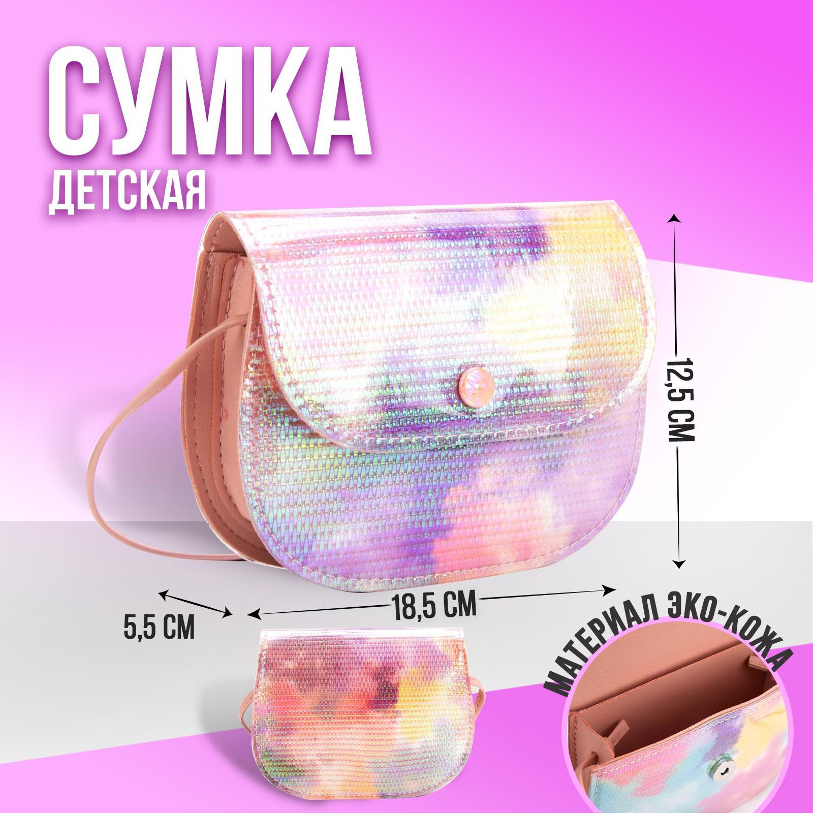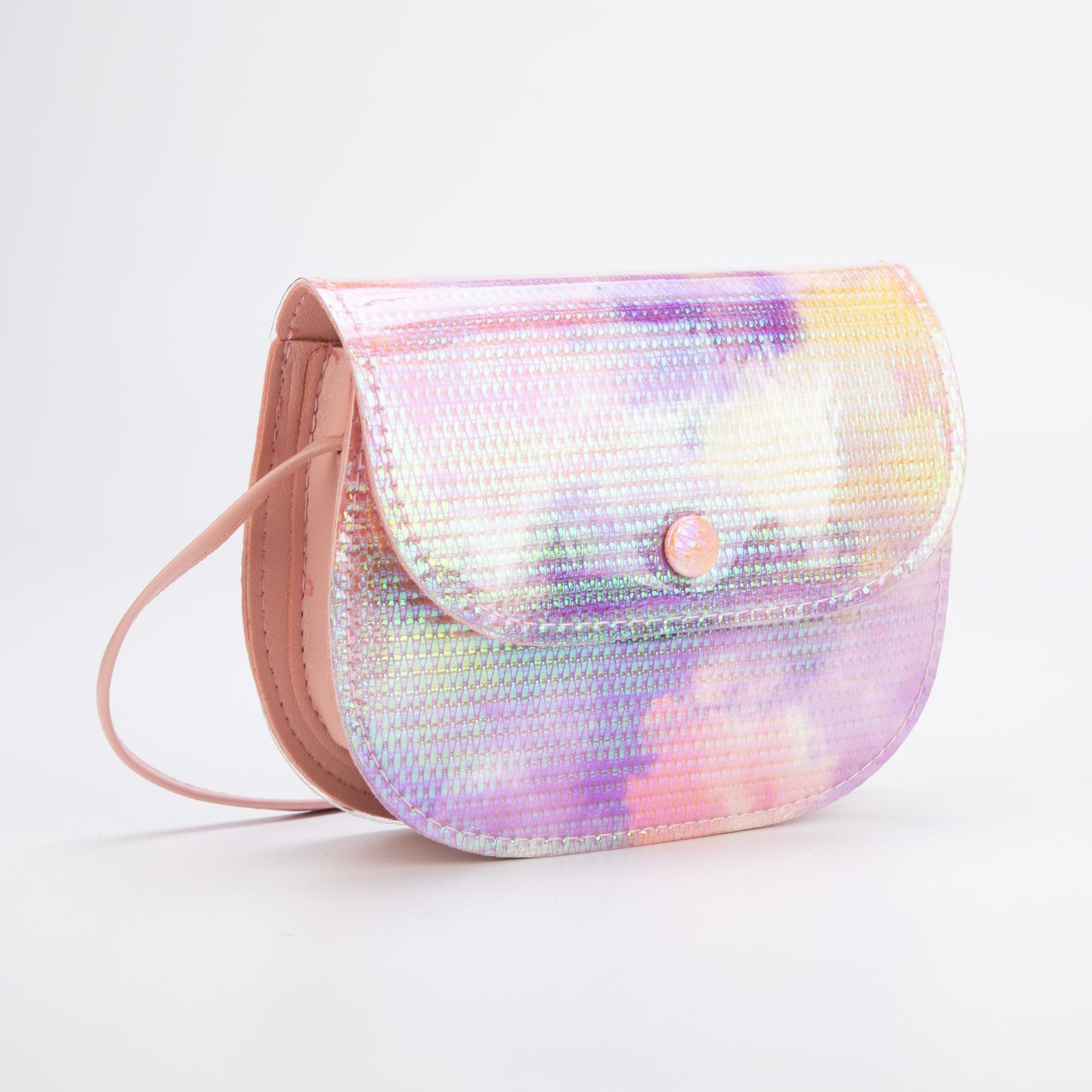 Сумка десткая блестящая с клапаном на кнопке, сиреневый, 18,5х5,5х12,5 см