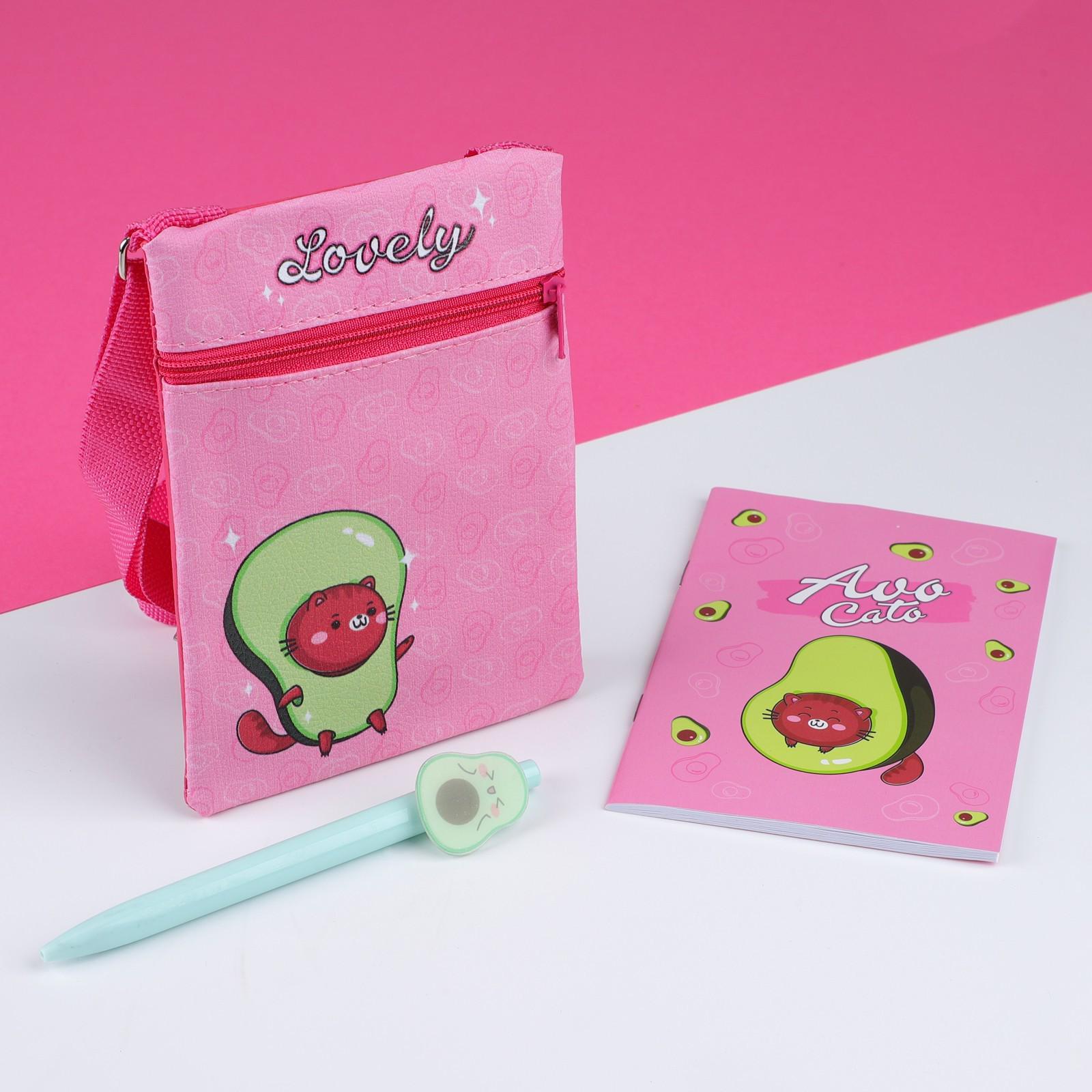 Набор для девочки Авокадо: сумка, ручка, блокнот, цвет розовый