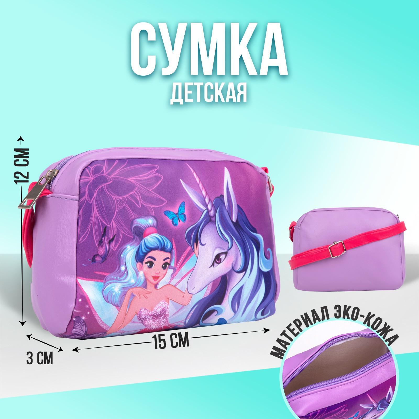 Сумка детская «Единорог и фея» из эко-кожи, на ремешке, 15х12х3 см