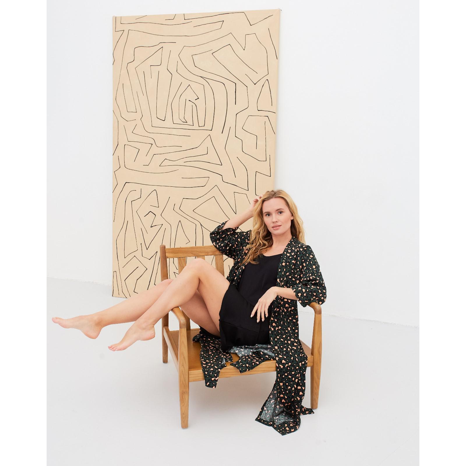 Комплект женский (халат и комбинация) KAFTAN, 44-46, цвет зелёный/чёрный