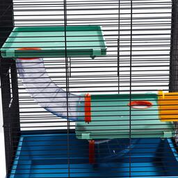 Клетка прямоугольной формы с горизонтальными прутьями – удобный и функциональный дом для любого грызуна: он занимает совсем немного места и отлично подходит для мелких домашних животных вроде крыс, мышей и хомяков.