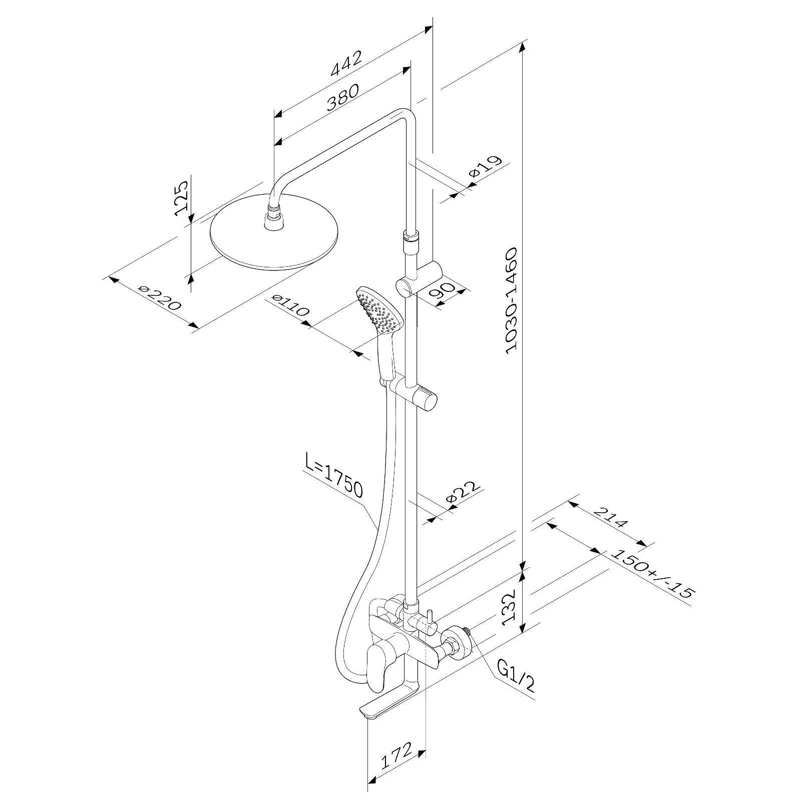 Душевая система AM.PM Like FF0780910, тропический душ, ручная лейка, смеситель, хром