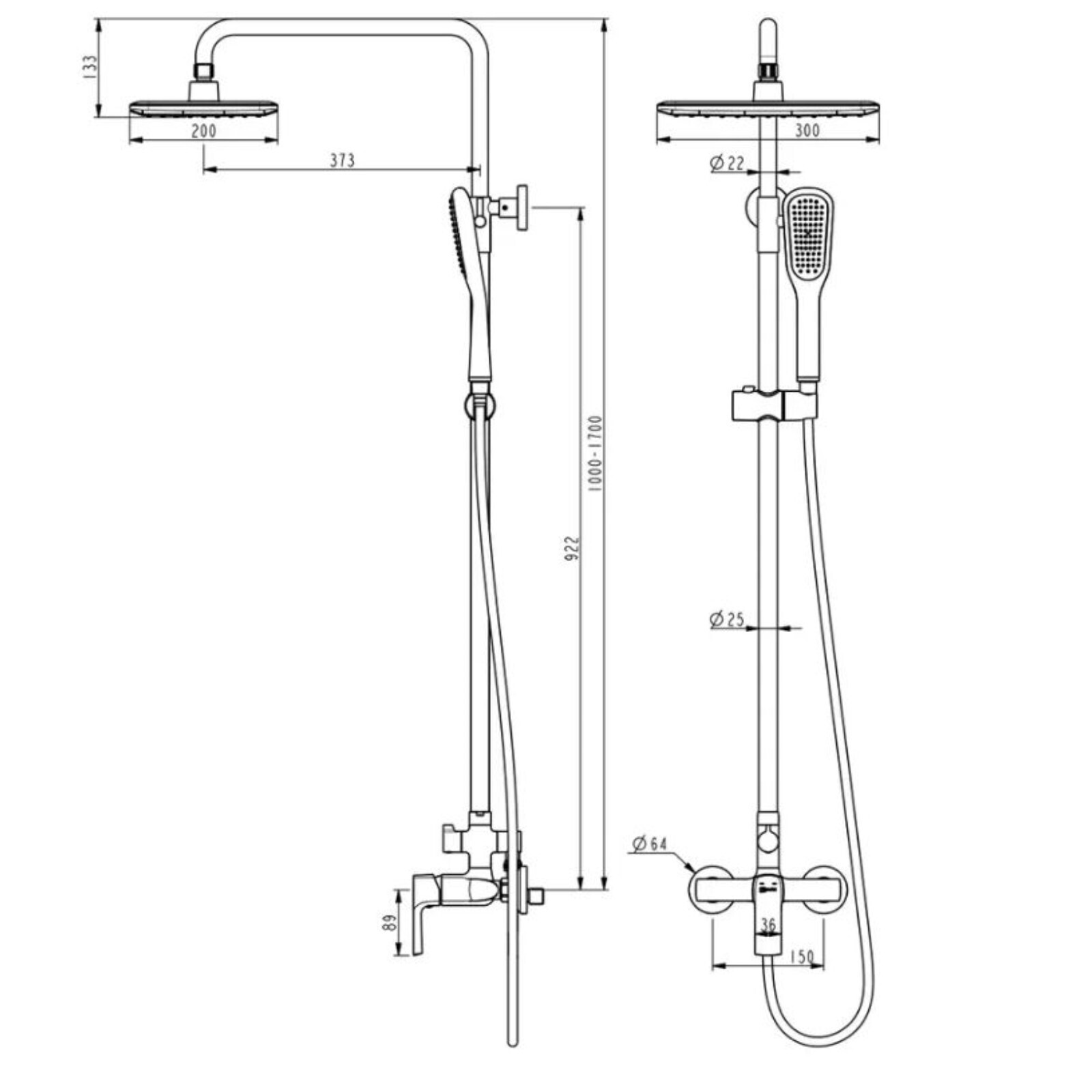 Душевая система Lemark Ursus LM7260BL, однорычажный, тропический душ, лейка, черный