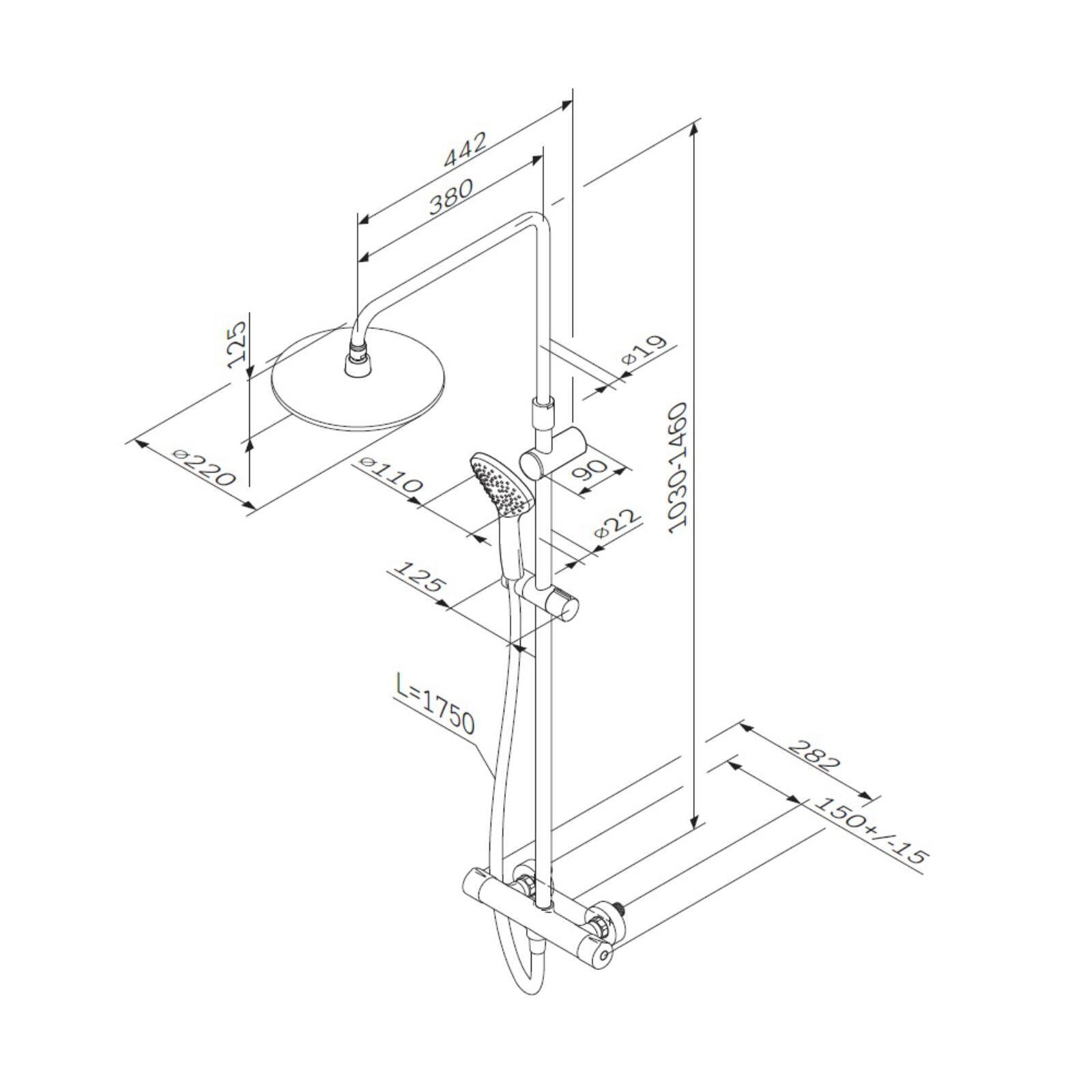 Душевая система AM.PM Gem F0790410, тропический душ, с термостатом хром