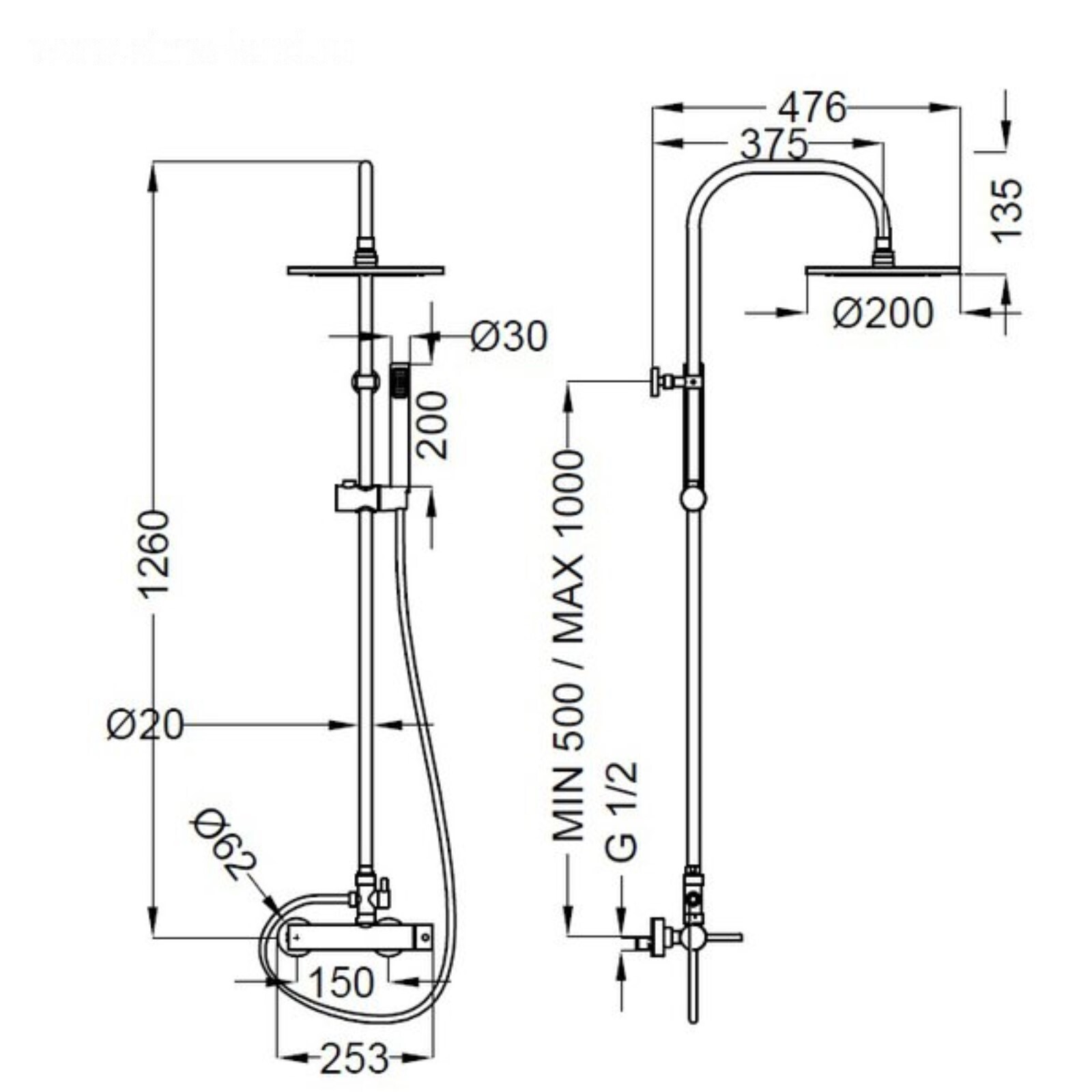 Душевая стойка изготовлена из высококачественной латуни и имеет хромоникелевое покрытие. Благодаря использованию этих материалов корпус защищён от коррозии, устойчив к перепадам температуры, потускнению, царапинам и механическим повреждениям.