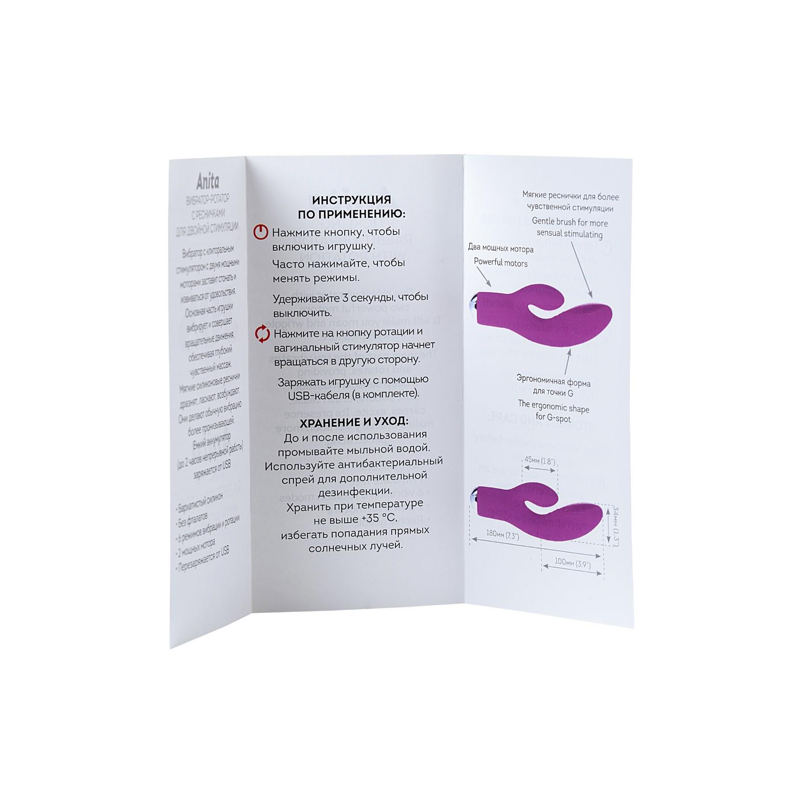 Вибратор-ротатор с ресничками для двойной стимуляции JOS Anita, силикон, цвет фиолетовый, 18 см 76