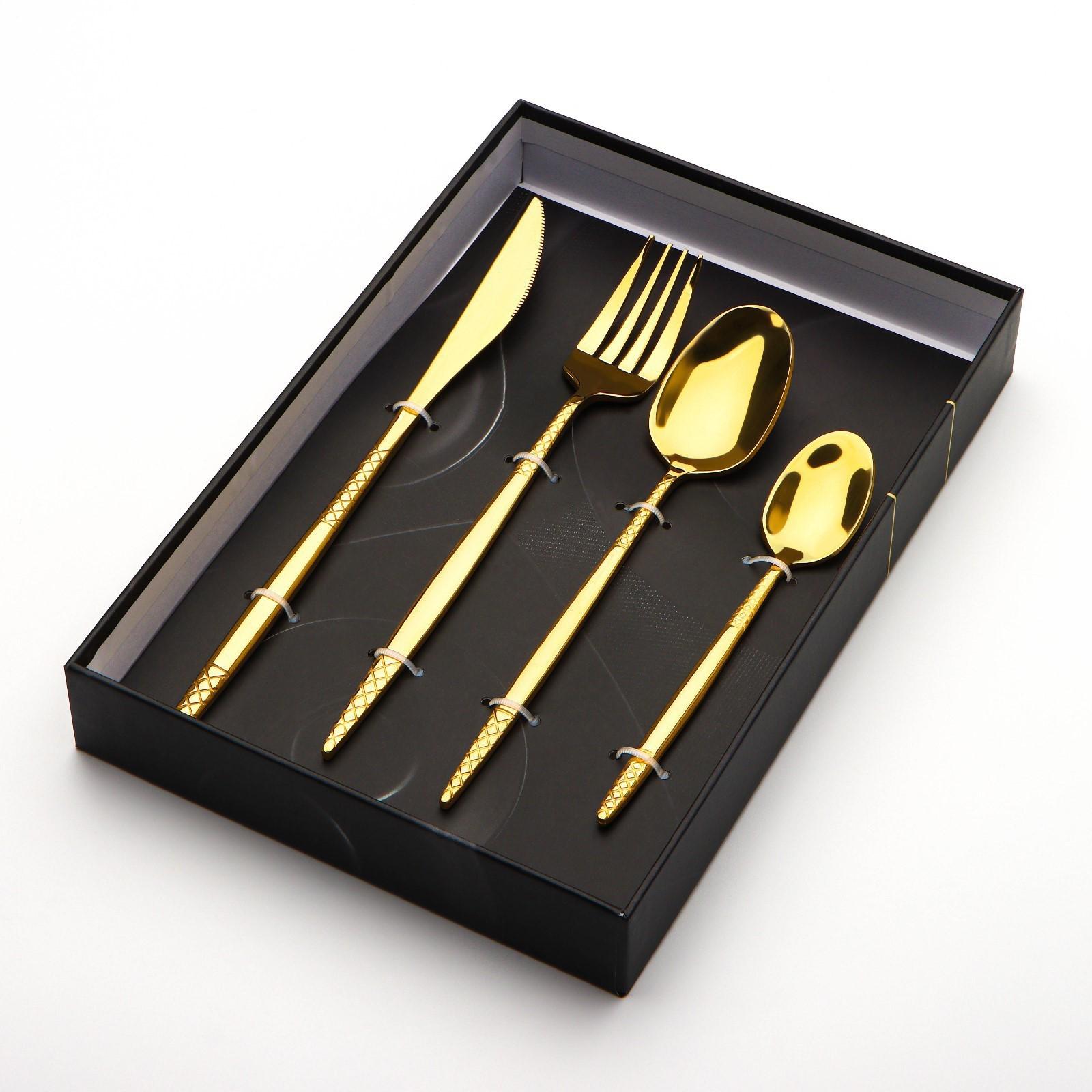 Набор столовых приборов Magistro «Античность», 4 предмета, цвет золотой