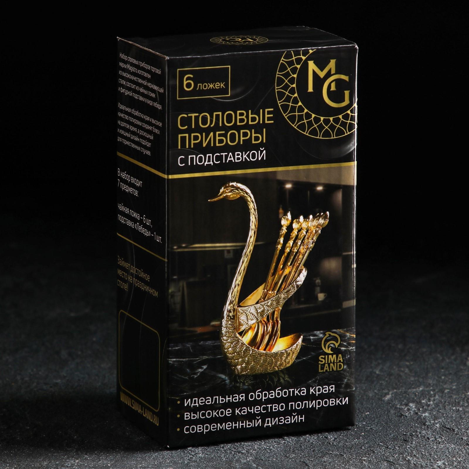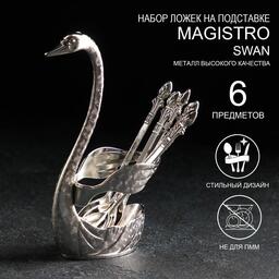 Набор ложек на подставке Magistro Swan, 7,5×5×15 см, 6 шт, цвет серебряный