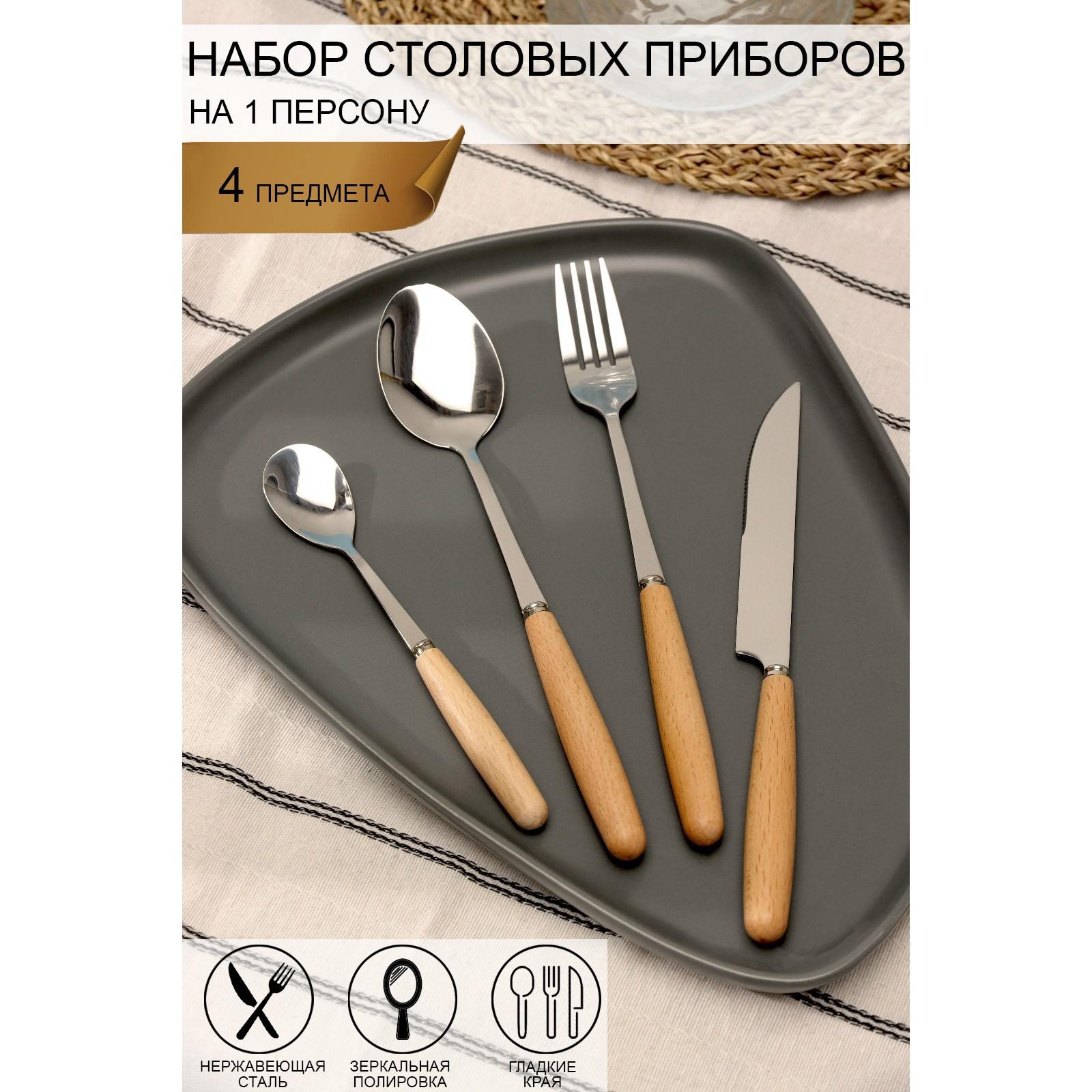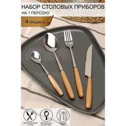 Набор столовых приборов Доляна Wood, 4 предмета, цвет металла серебряный