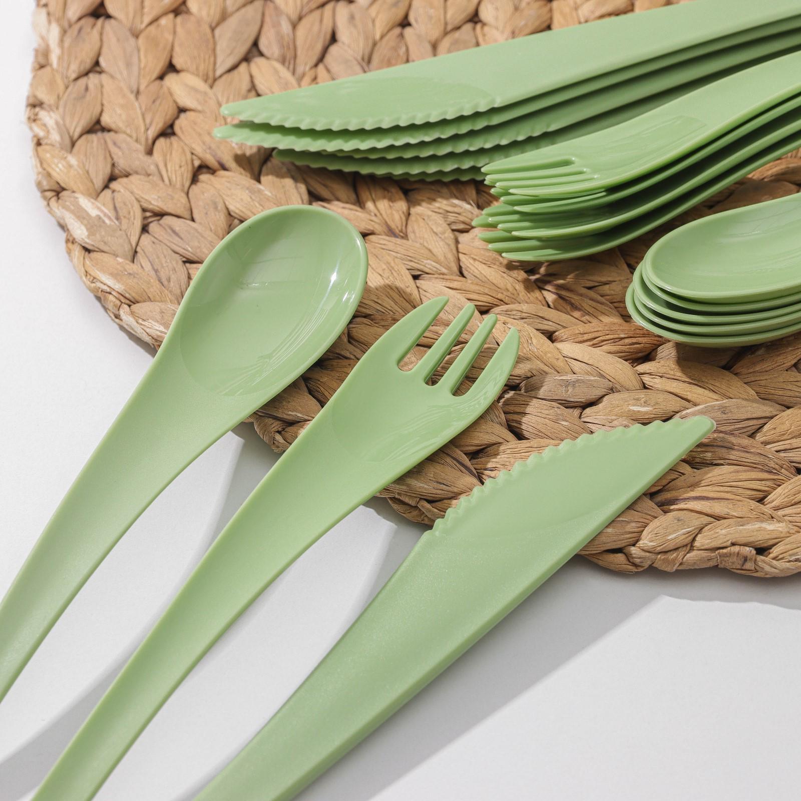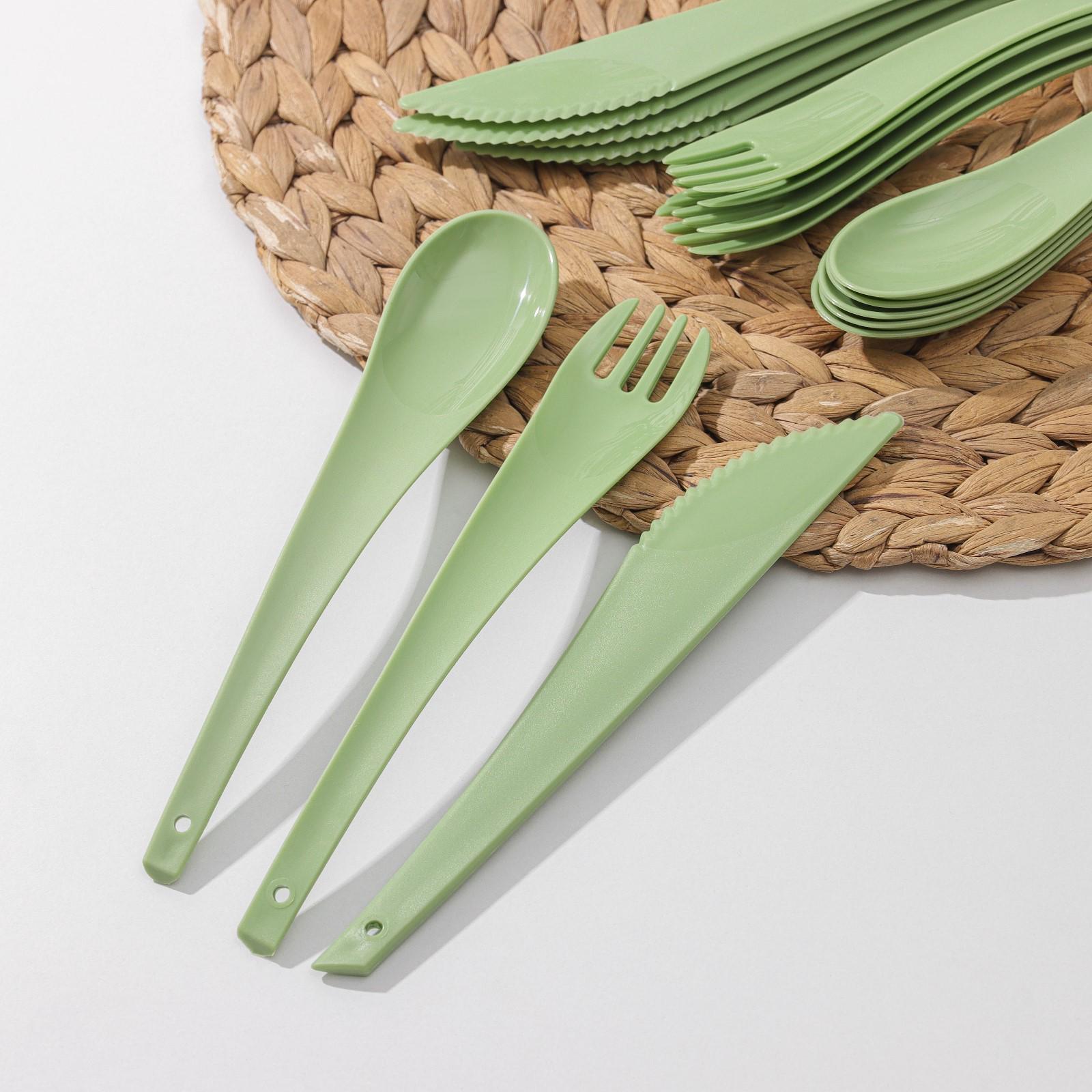 Набор столовых приборов Grill Party, 18 предметов: 6 вилок, 6 ложек, 6 ножей, цвет зелёный