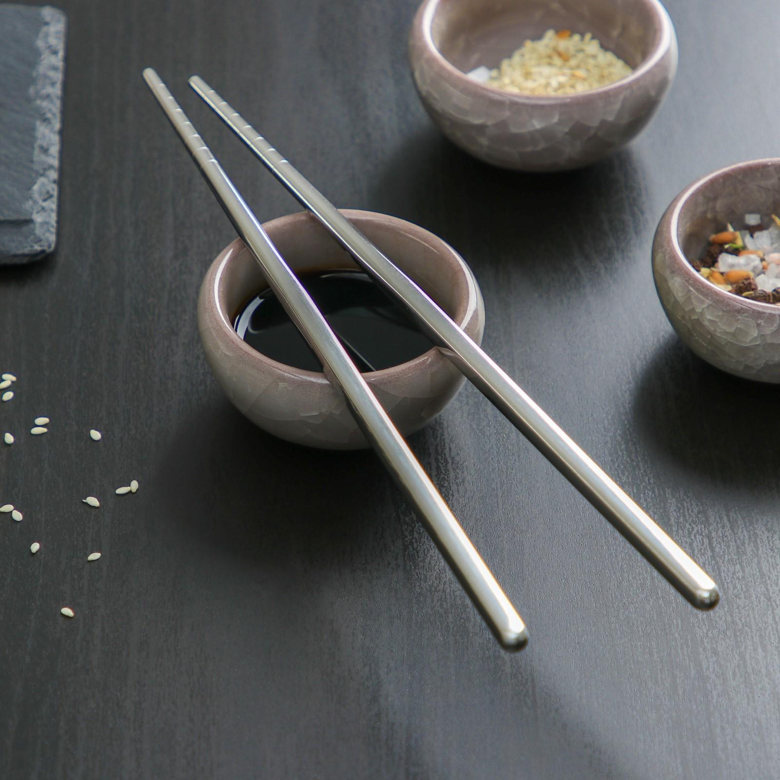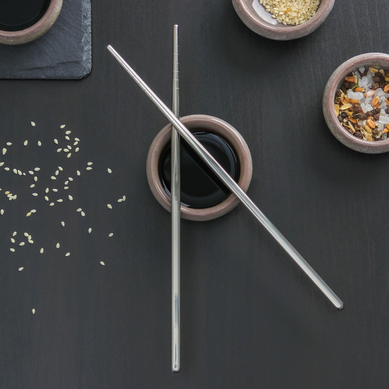 Многоразовые палочки для суши Bacchette (2 шт.) выполнены из высококачественной нержавеющей стали для пищевой отрасли. Длина 21 см, вес 18 г. Азиатская кухня, включая блюда из Японии, Кореи, Китая и Вьетнама, набирает все большую популярность. Сегодня трудно найти людей равнодушных к таким деликатесам, как роллы и суши, лапша и рис WOK. Китайские палочки идеально подойдут любителям стильных вещей и азиатской кухни.