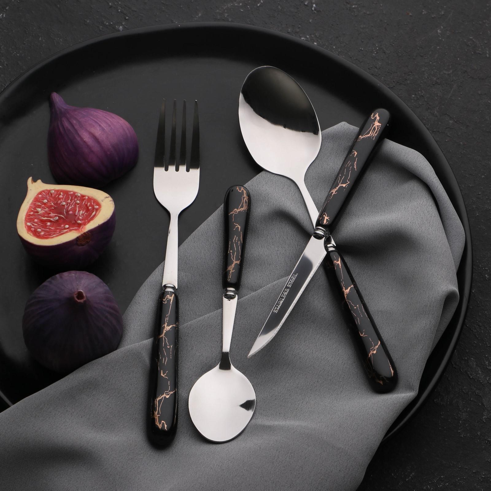 • Состав набора Вилка столовая, Ложка столовая, Ложка чайная, Нож столовый