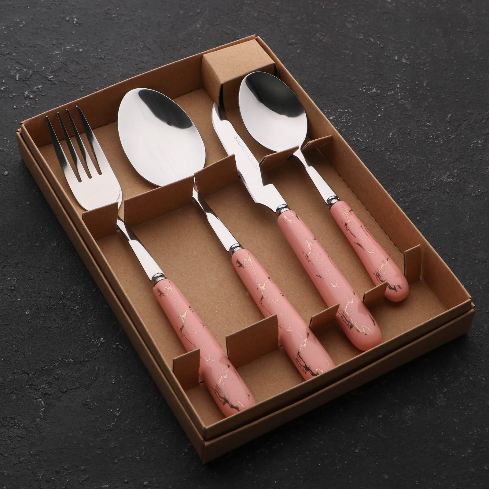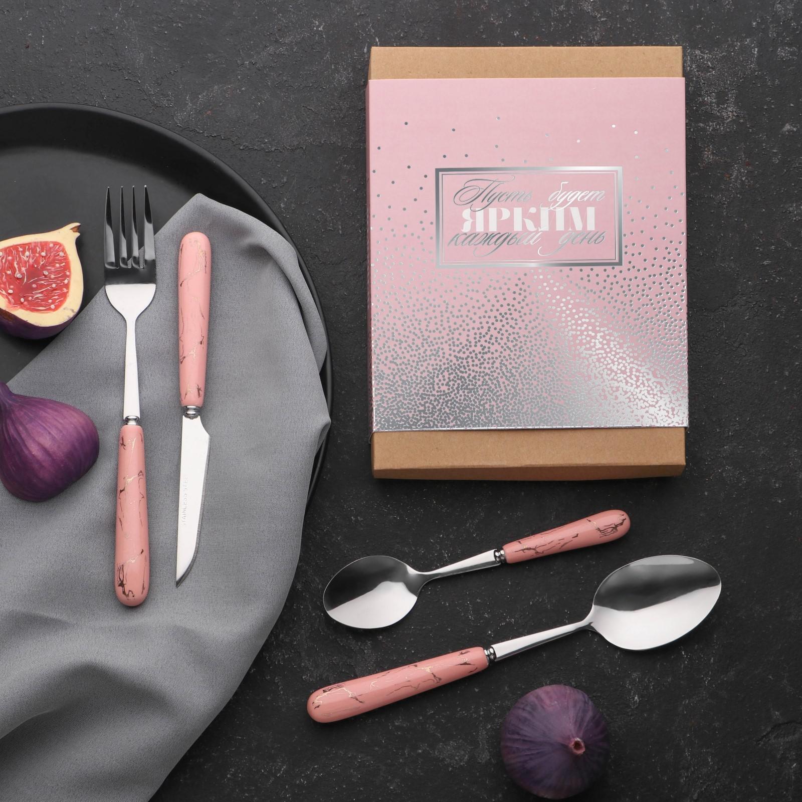 Набор из четырёх столовых приборов «Пусть каждый день будет ярким», 20 х 14 см