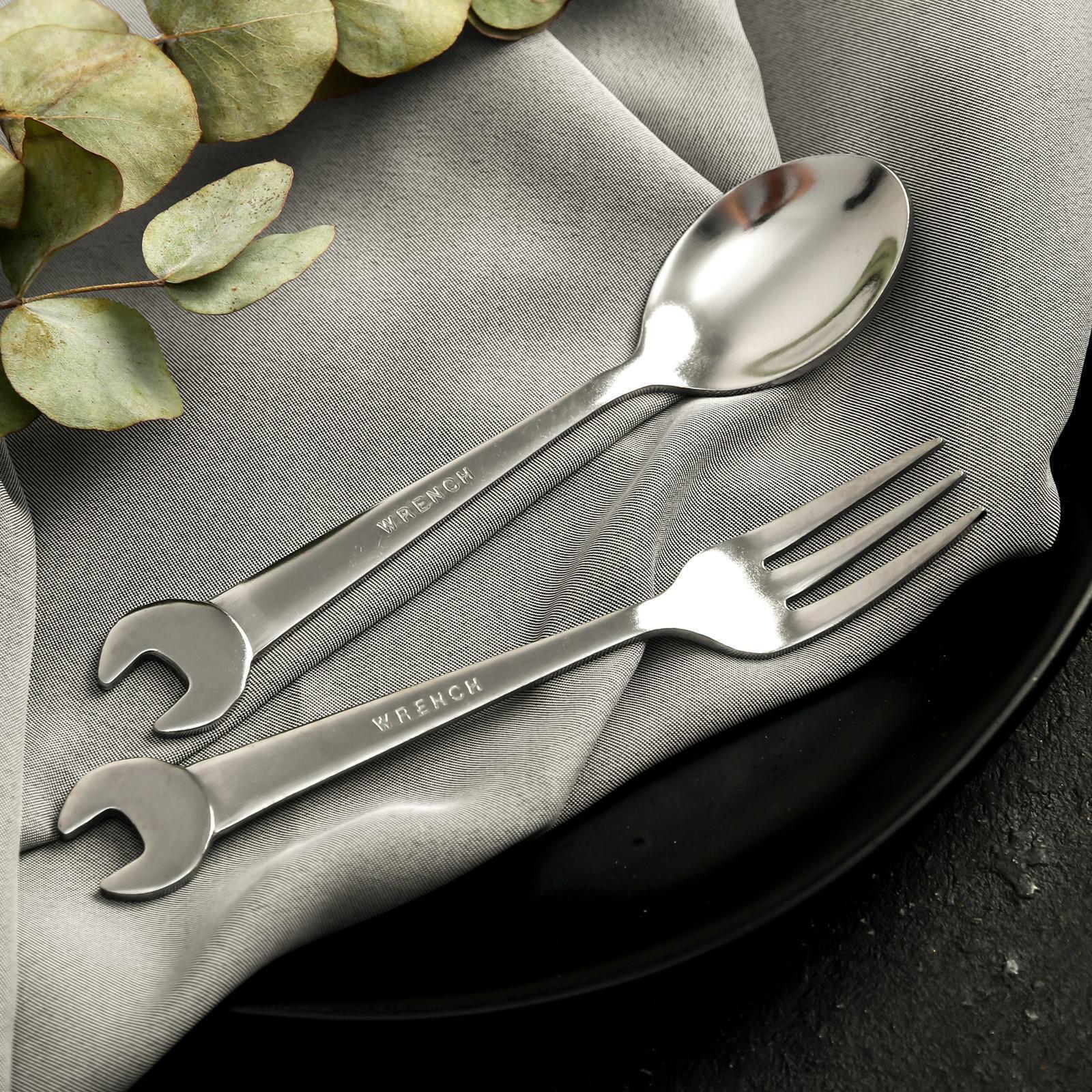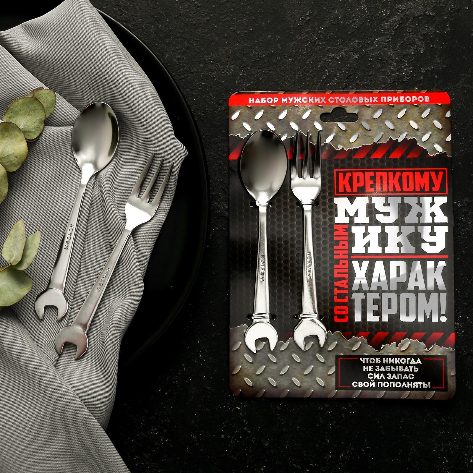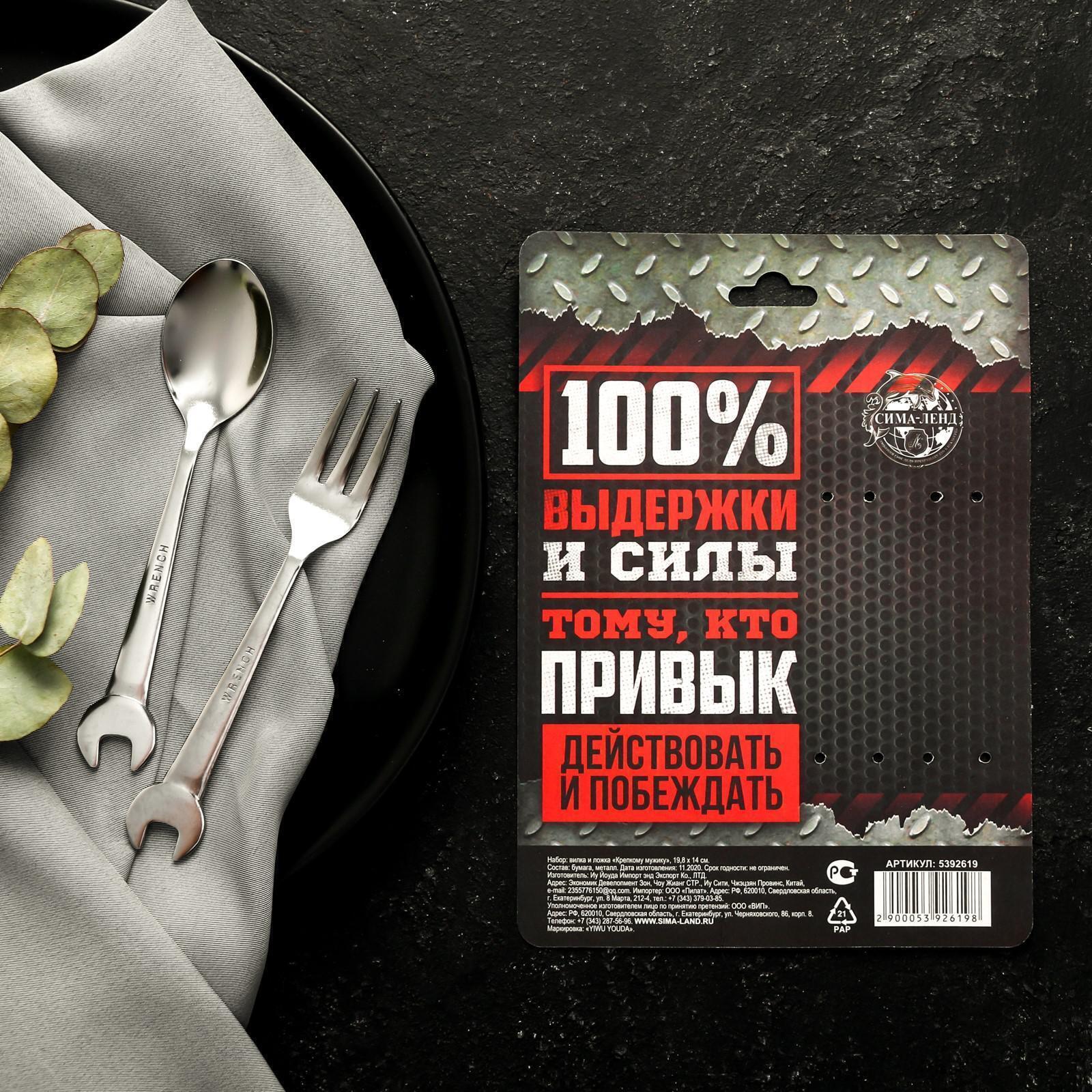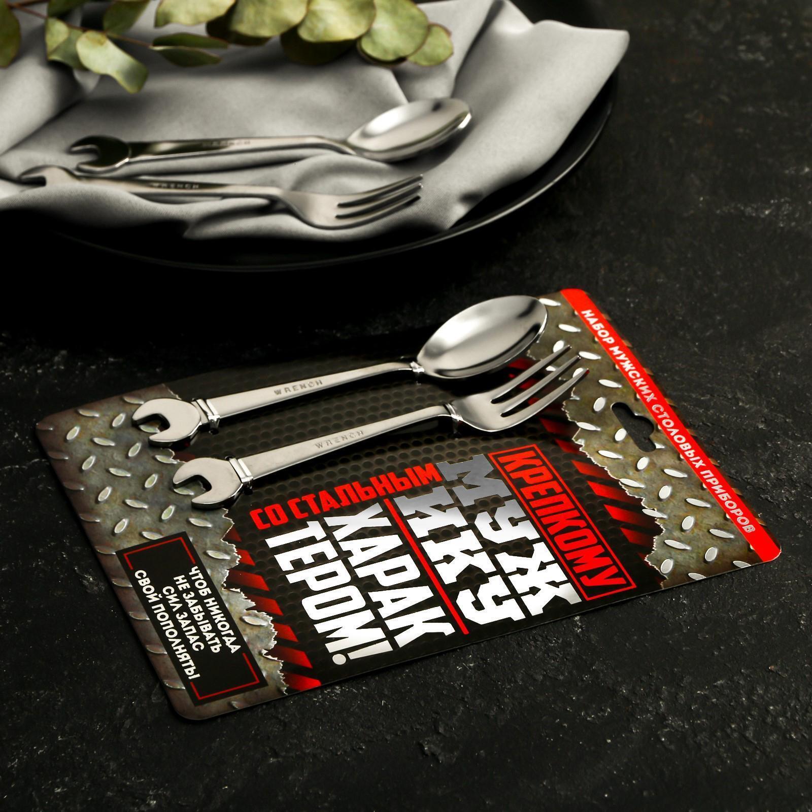 Набор ложка - гаечный ключ и вилка - гаечный ключ «Крепкому мужику», 19,8 х 14 см