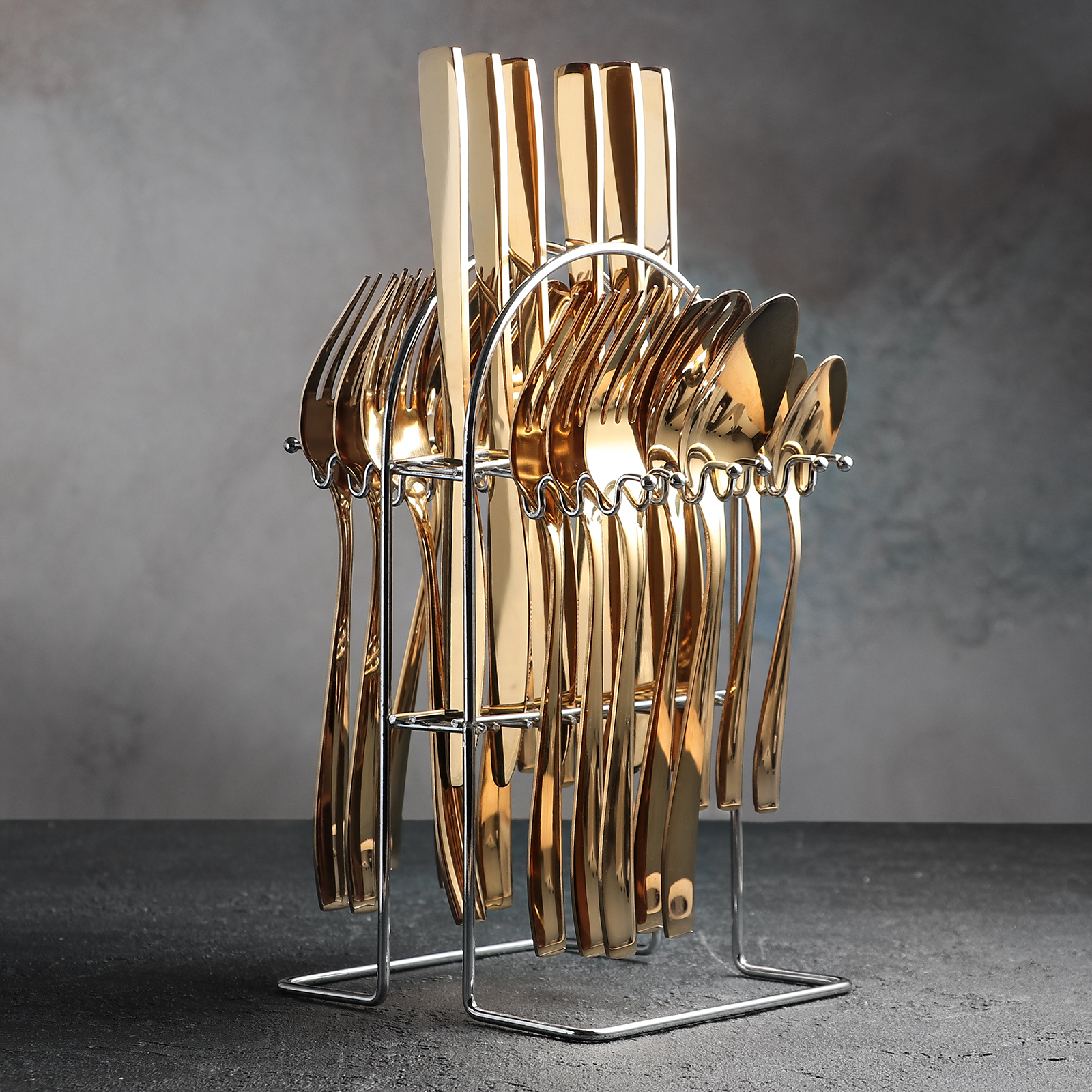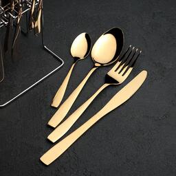 Набор столовых приборов «Золото», 24 предмета, на подставке, цвет золотой