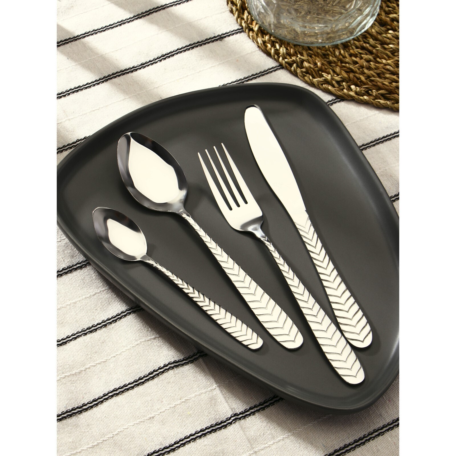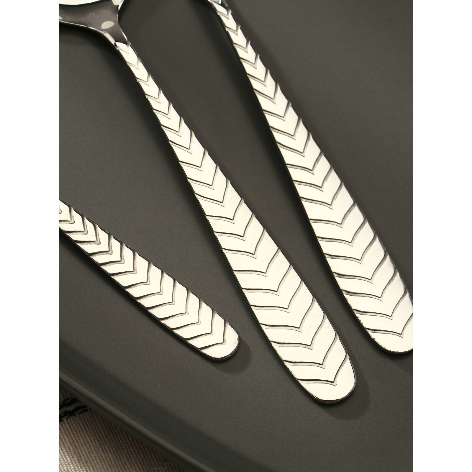 • Состав набора Вилка столовая, Ложка столовая, Ложка чайная, Нож столовый, Подставка