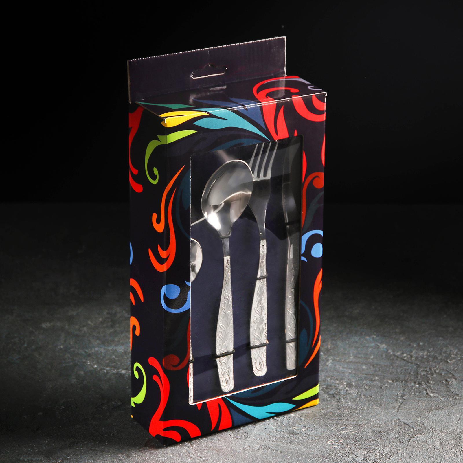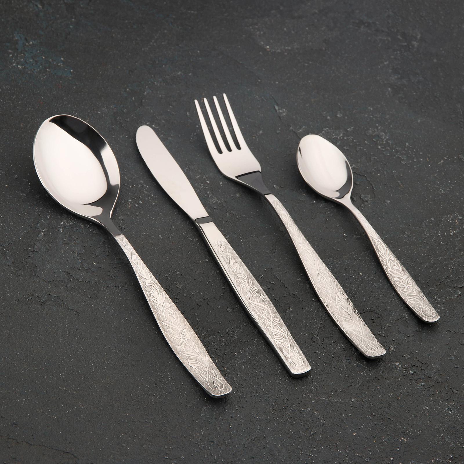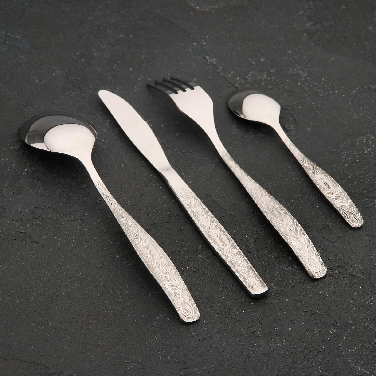Набор столовый «Уралочка», 24 предмета, толщина 2 мм, картонная каробка, цвет серебряный