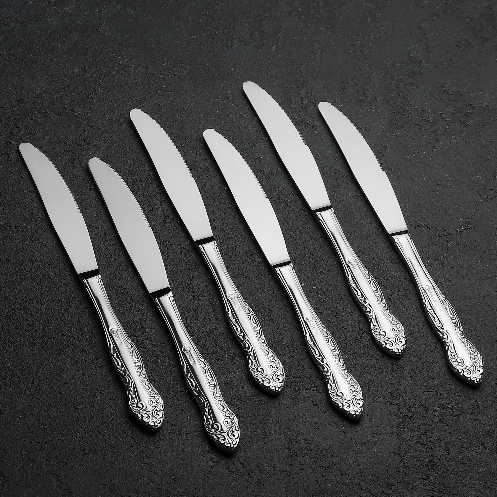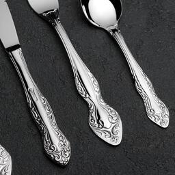 Комплект «Славянка» — отличный выбор для большого застолья. Приборы, украшенные изысканными узорами, помогут создать атмосферу торжественности и уюта.