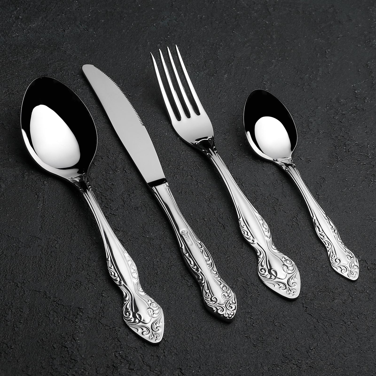 Набор столовых приборов «Славянка», 24 предмета, декоративная коробка, цвет серебряный