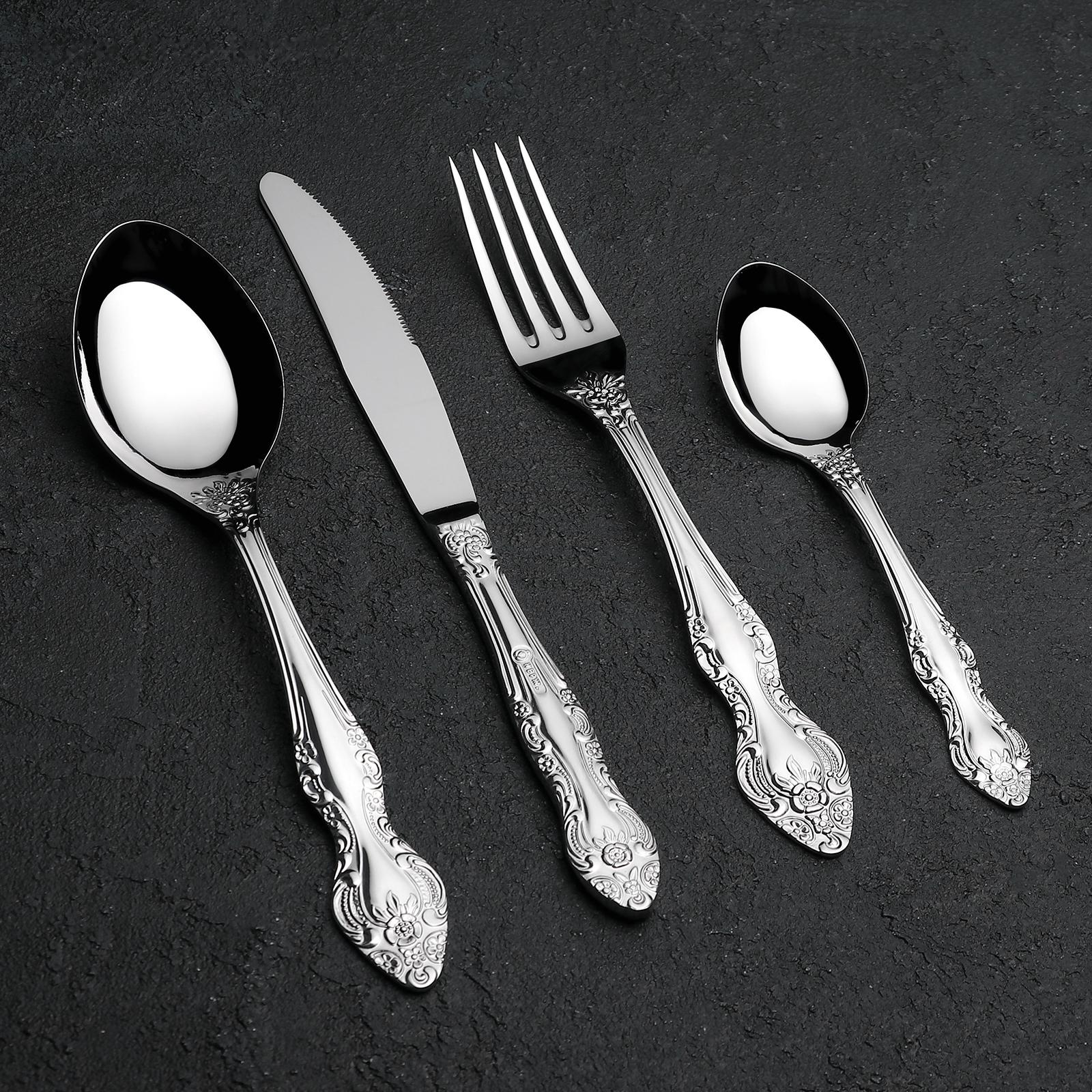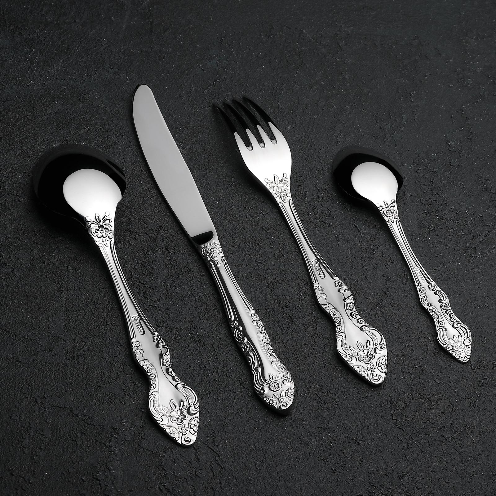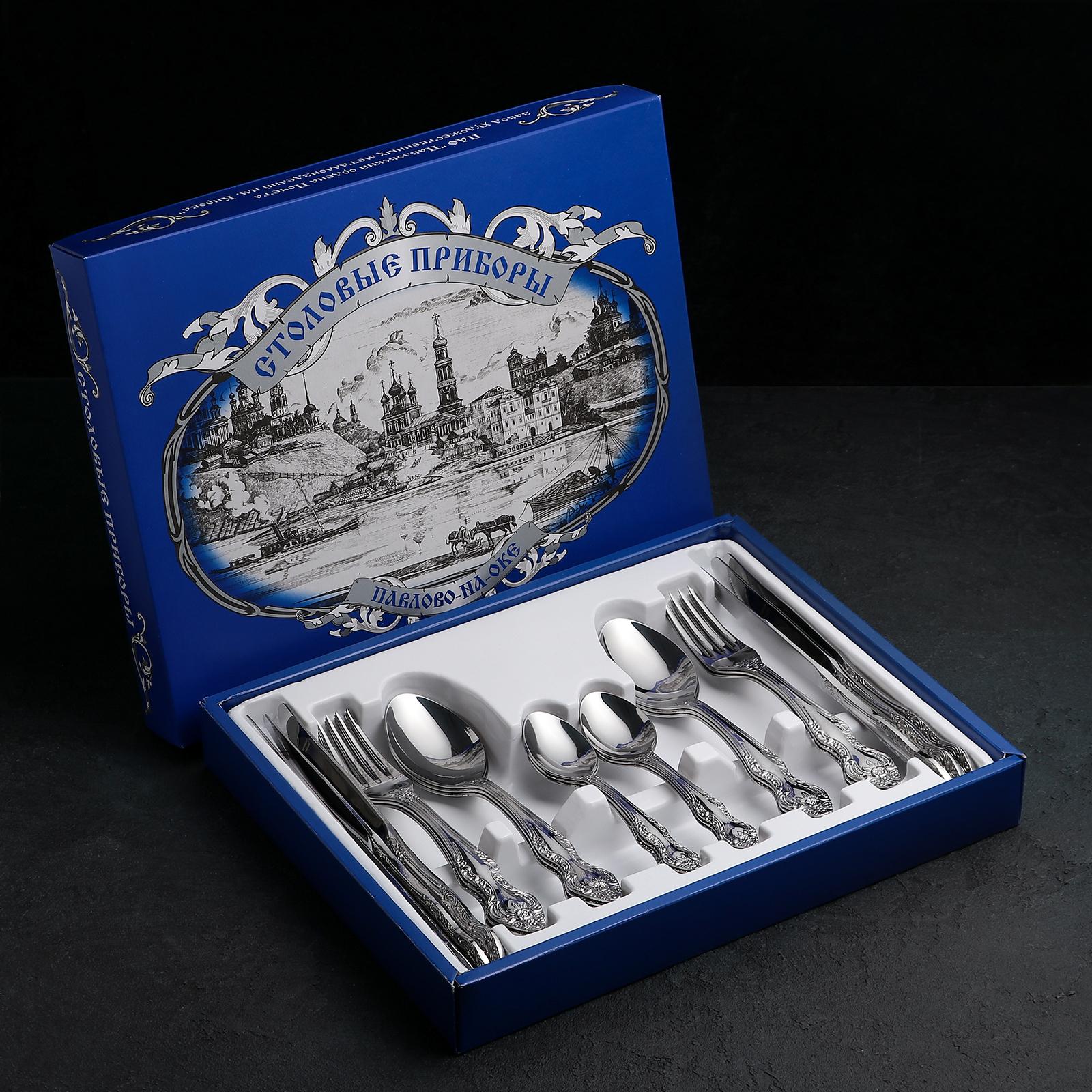 Набор столовых приборов «Тройка», 24 предмета, декоративная коробка, цвет серебряный