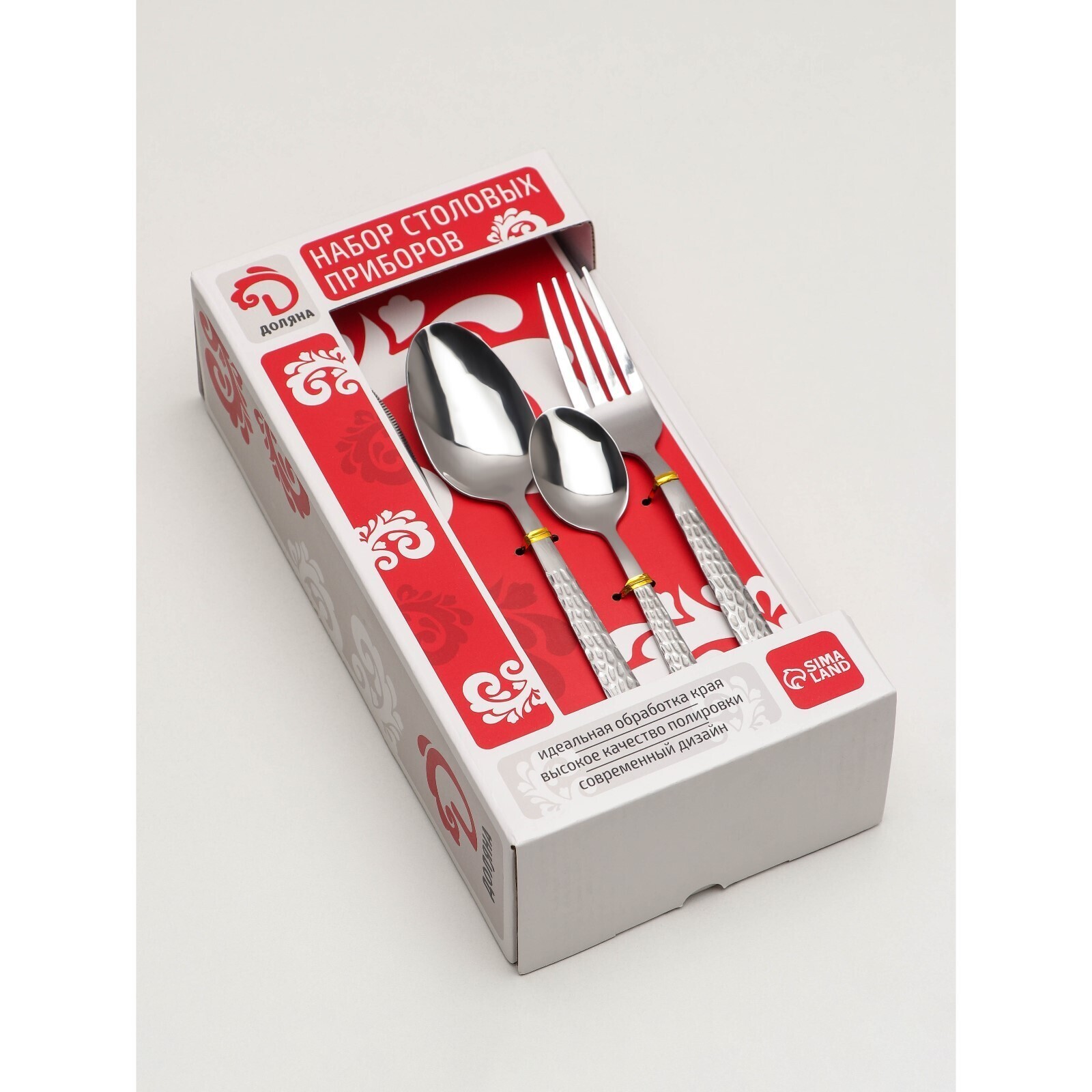 • Состав набора Вилка столовая, Ложка столовая, Ложка чайная, Нож столовый