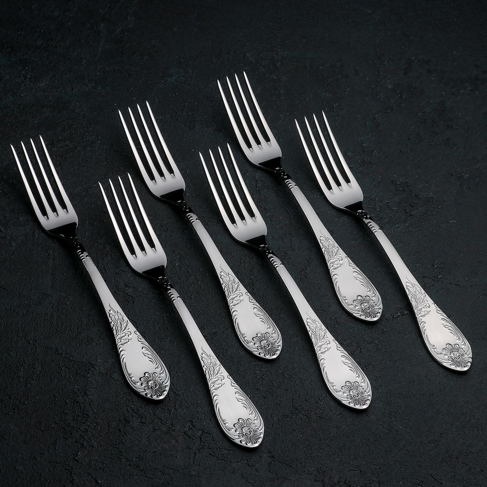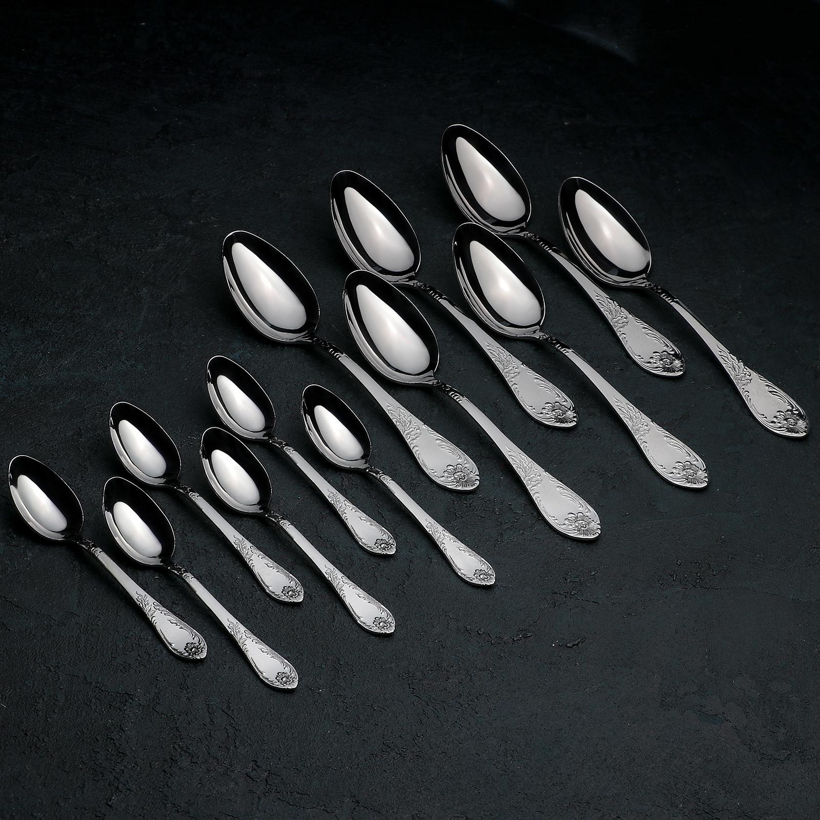 Комплект «Императорский» — отличный выбор для большого застолья. Приборы, украшенные изысканными узорами, помогут создать атмосферу торжественности и уюта.