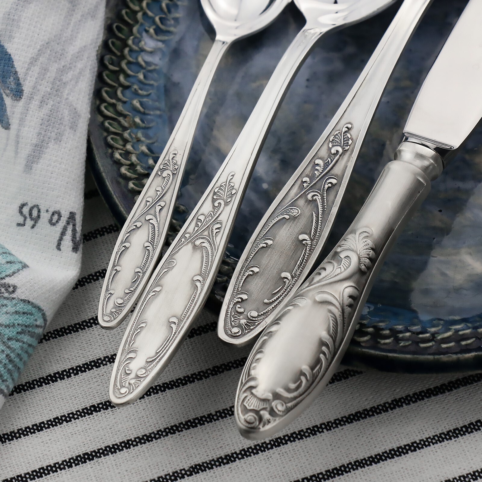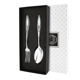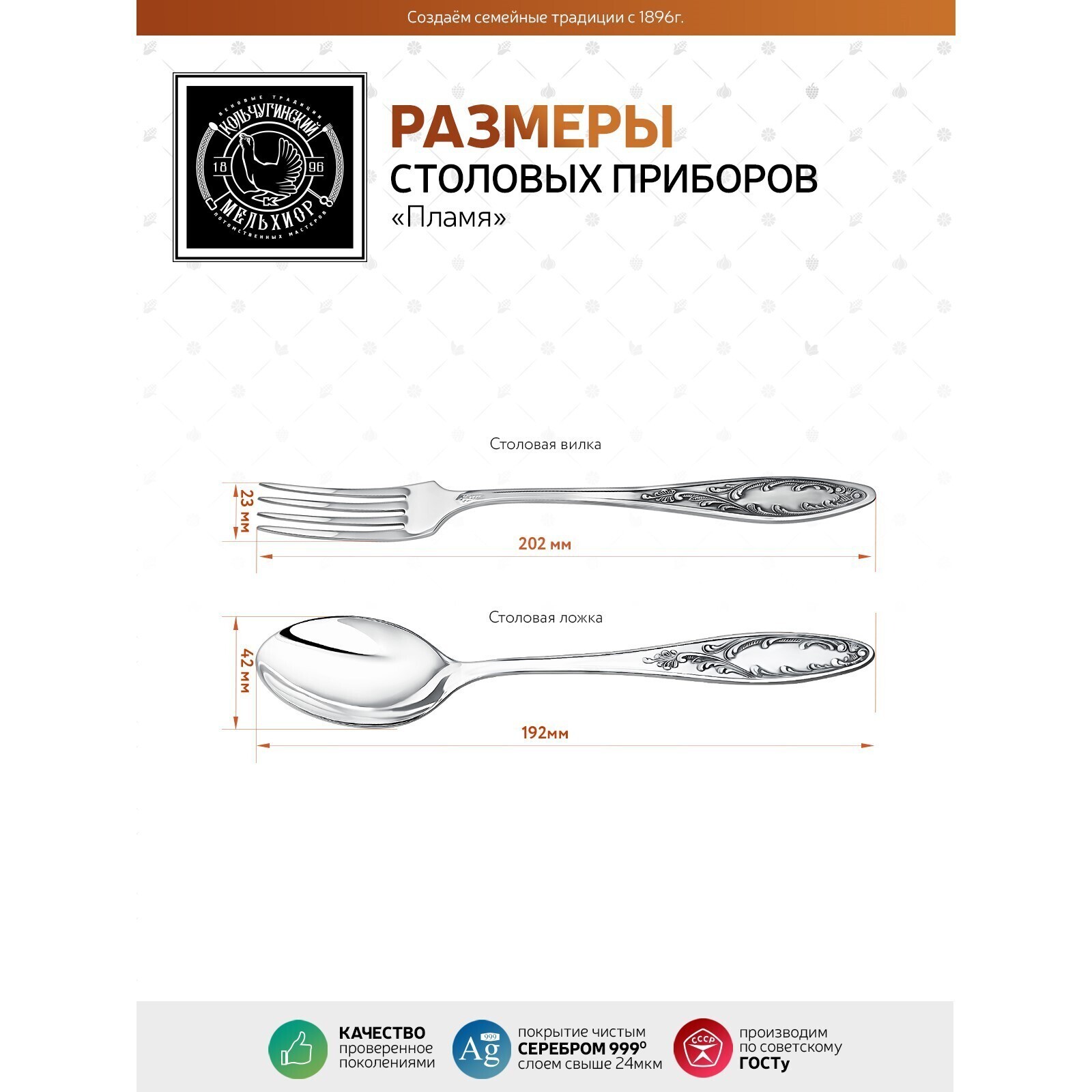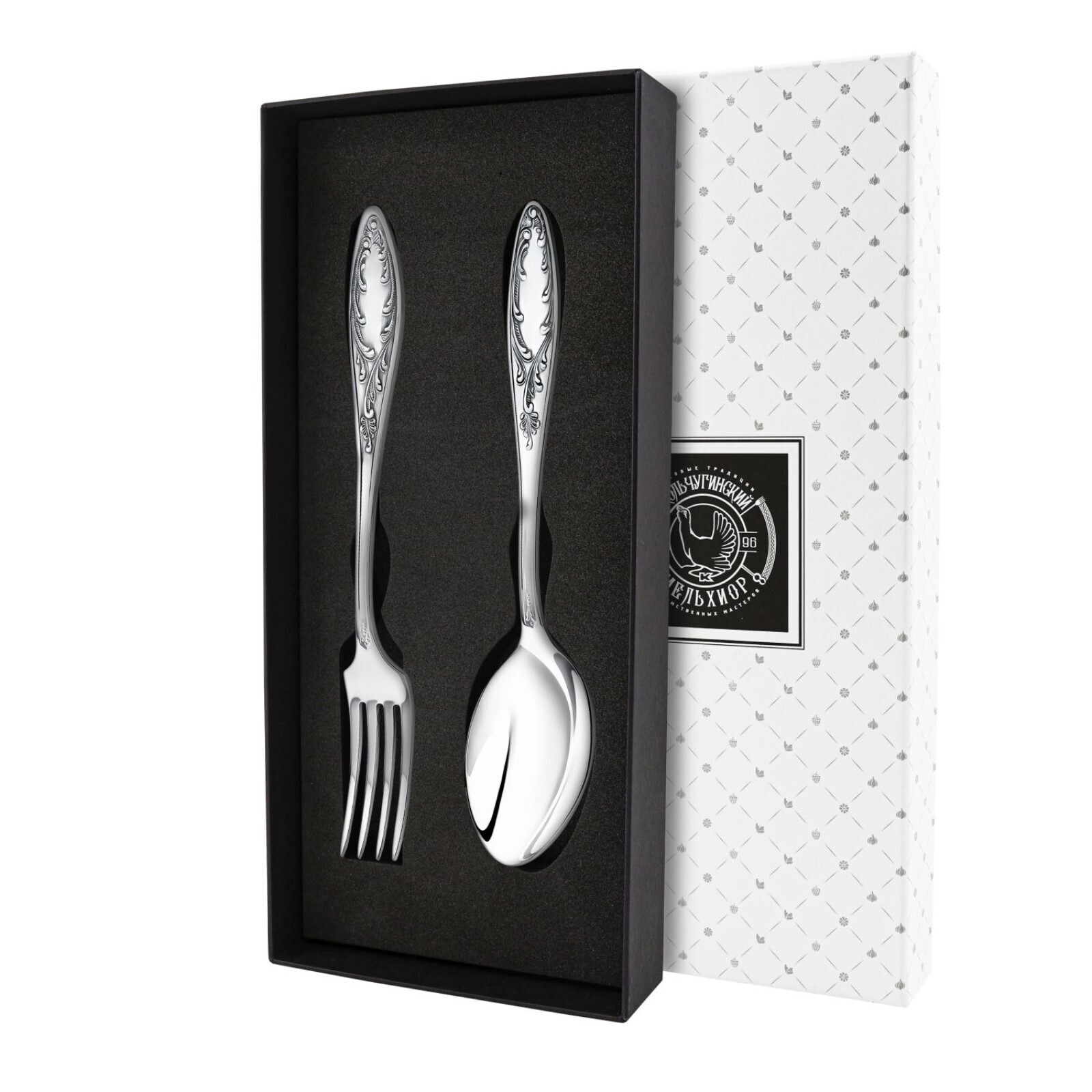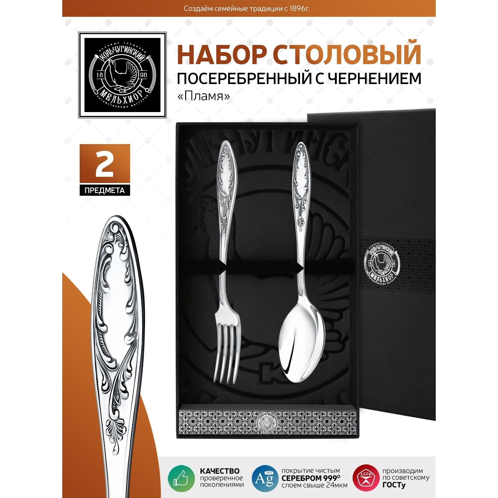 Набор столовый «Пламя», 2 предмета, посеребрённый, с чернением, в футляре