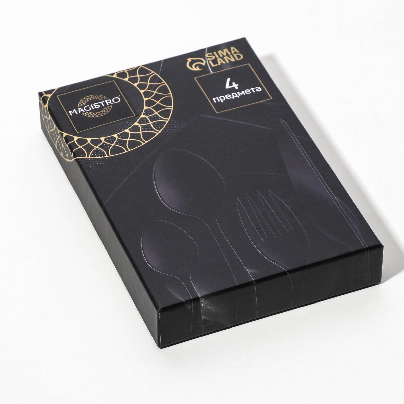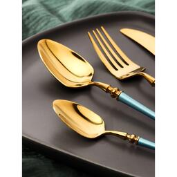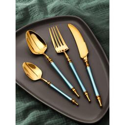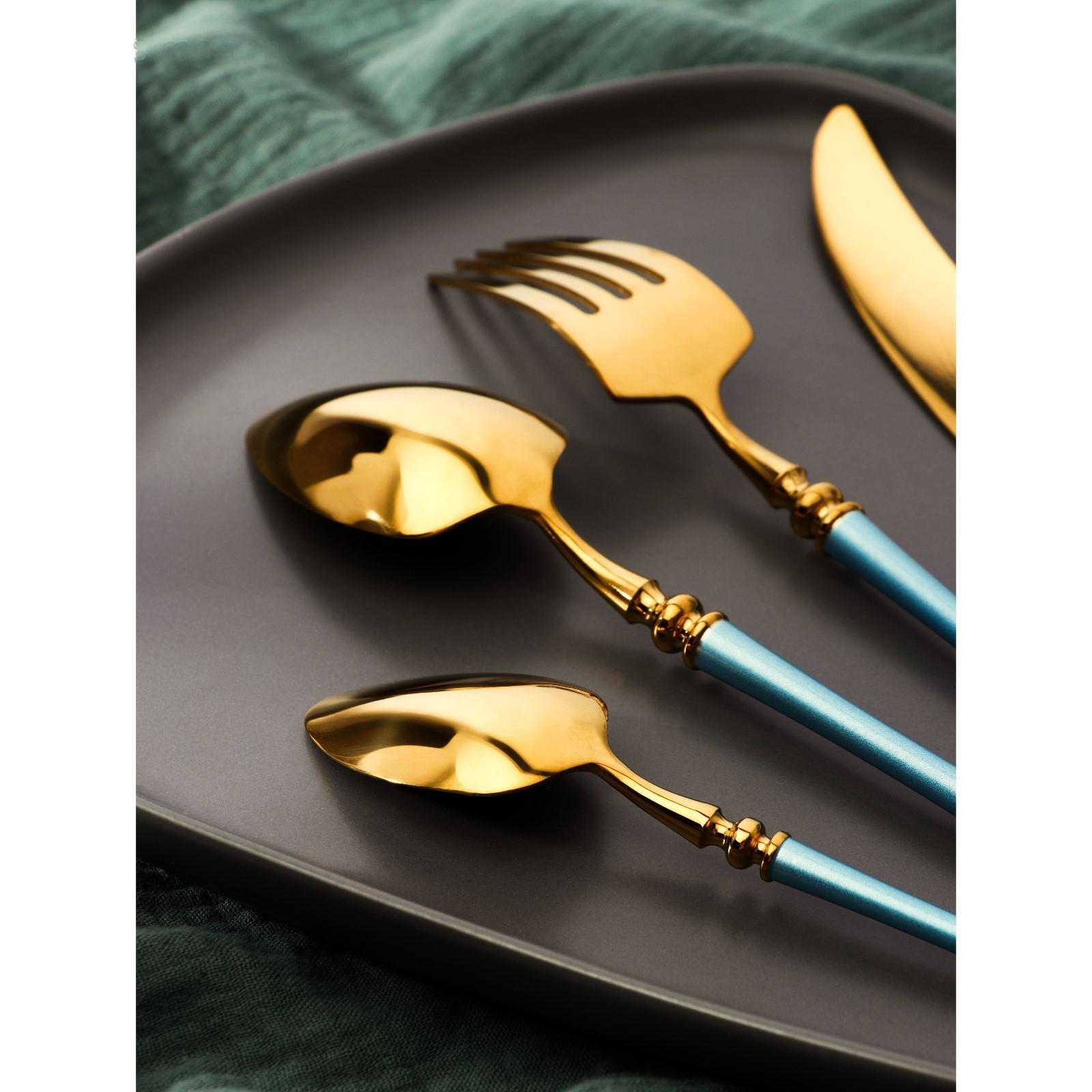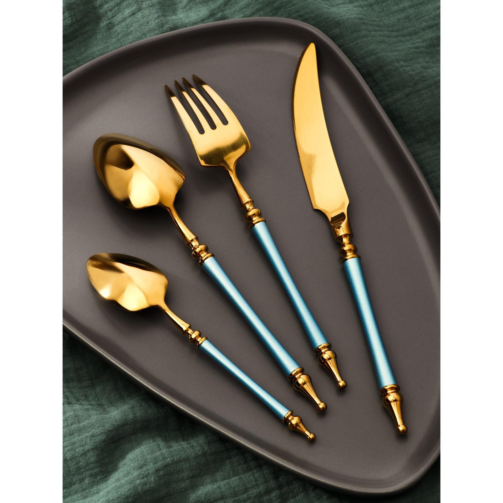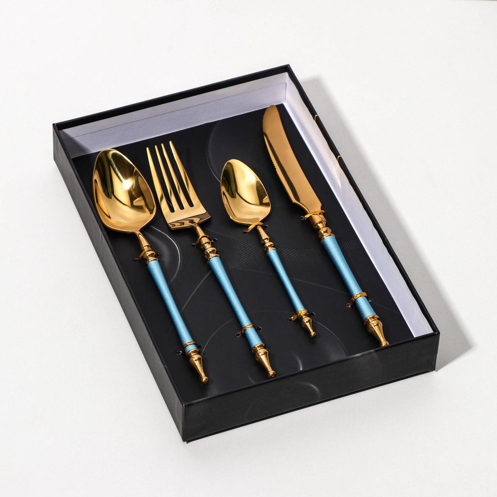 Набор столовых приборов «Колоннада», 4 предмета, цвет металла золотой, ручки голубые