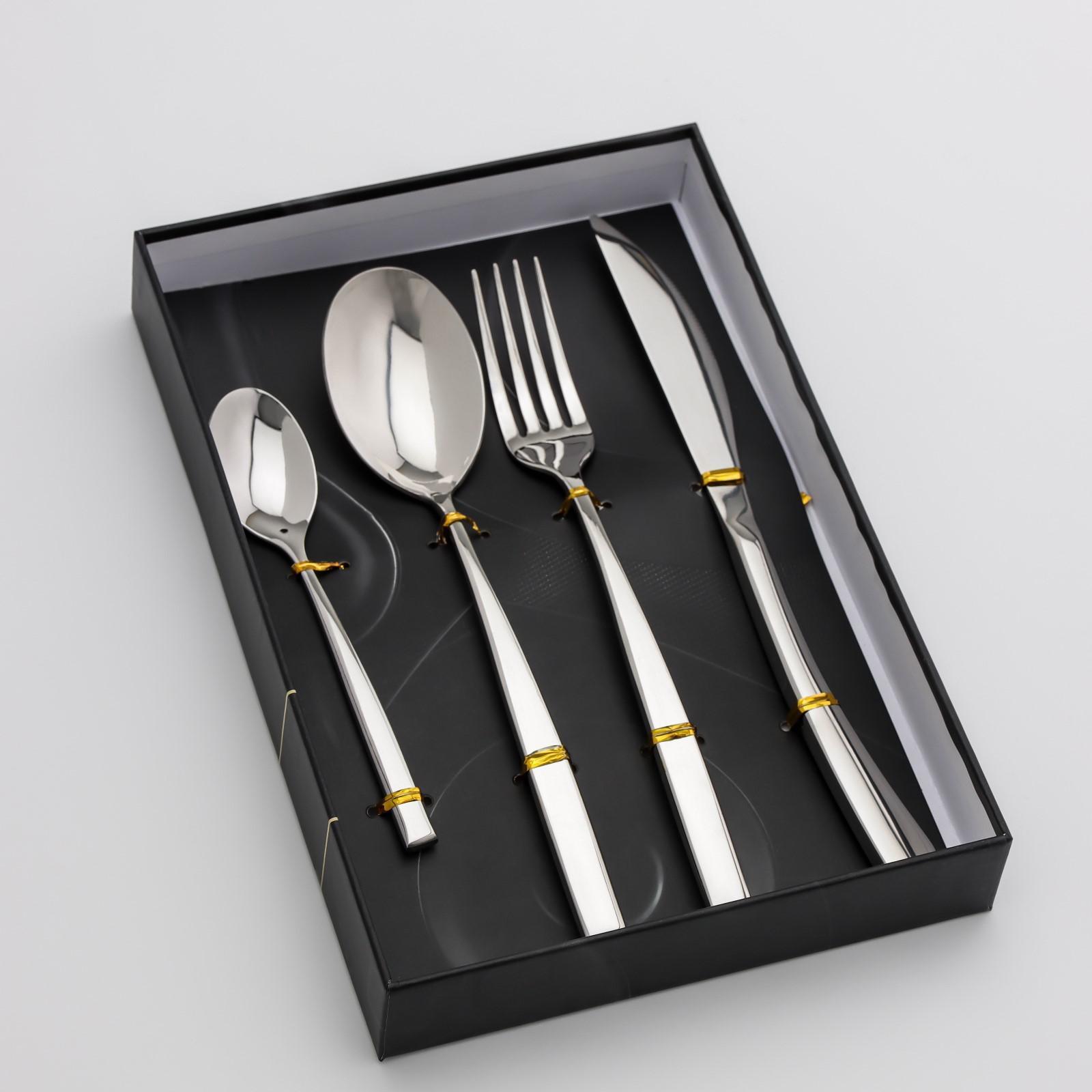 • Состав набора Вилка столовая, Ложка столовая, Ложка чайная, Нож столовый