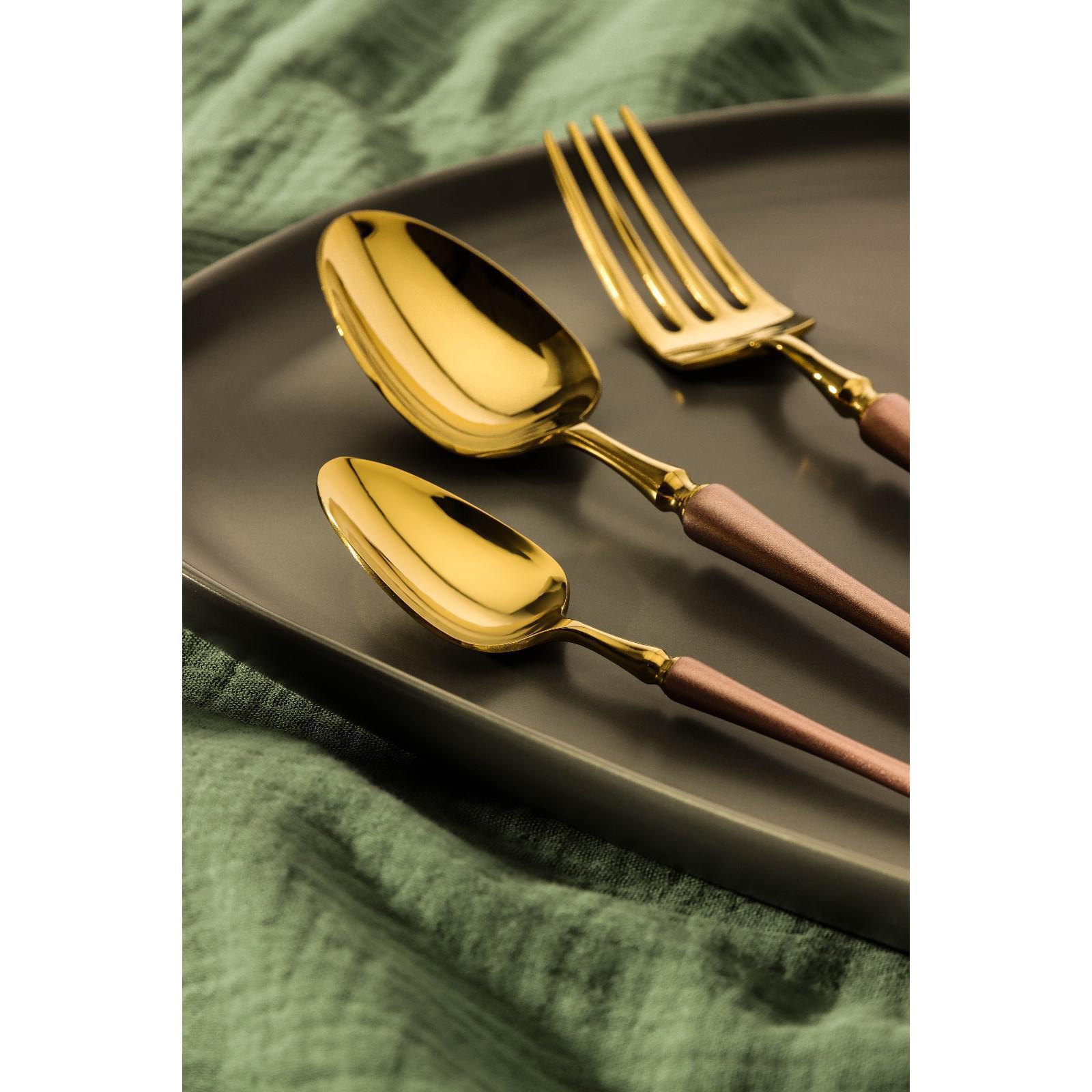 Столовые приборы Magistro «Фьюжн» – аристократичные предметы сервировки, которые придутся по вкусу ценителям прекрасного. Такие приборы хорошо подойдут для фуд-съёмок, праздничных и повседневных сервировок. Предметы элегантные и увесистые, но при этом хорошо сбалансированные, ими удобно пользоваться каждый день. Функциональные ножи с широким основанием и скругленным кончиком удобно использовать как для нарезки продуктов, так и для намазки паштетов или сливочного масла. Глубокие вместительные ложки оптимальны для супов и бульонов.