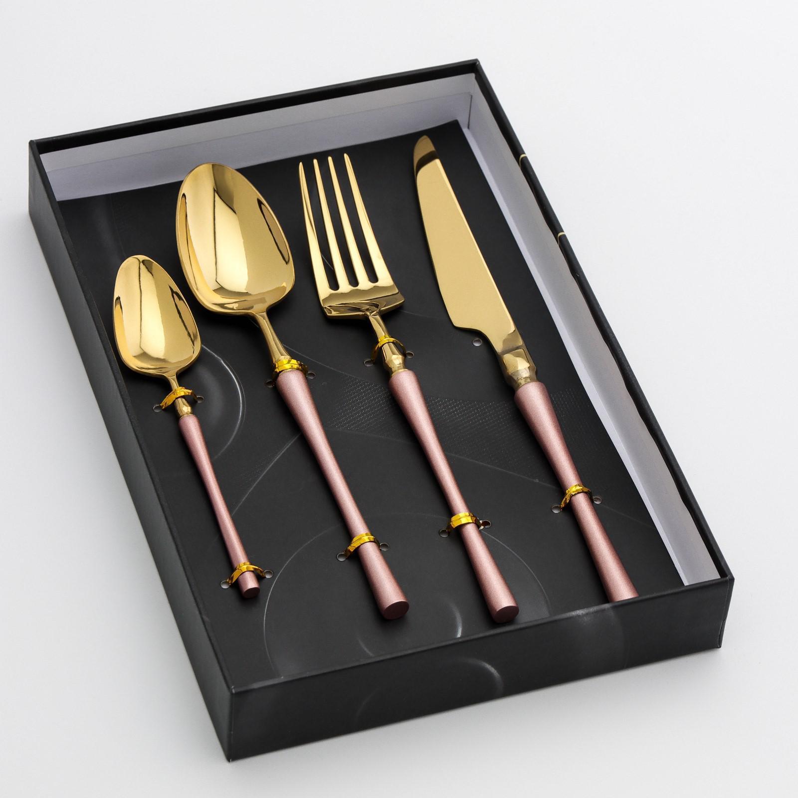 Набор столовых приборов Magistro «Фьюжн», 4 предмета, цвет металла золотой, розовые ручки