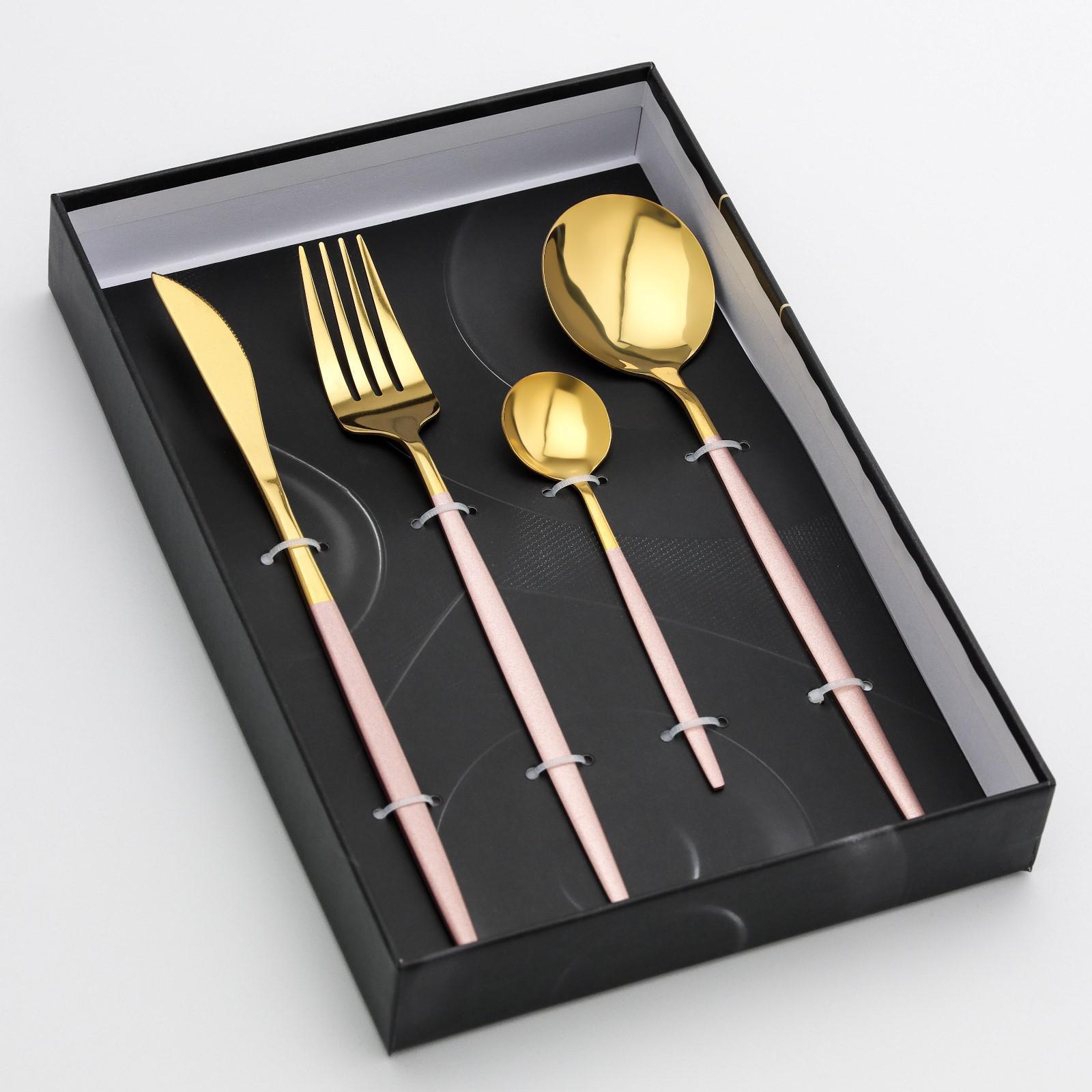 Набор столовых приборов Magistro «Блинк», 4 предмета, цвет металла золотой, розовые ручки