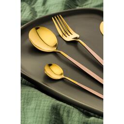 Выполнен в классическом дизайне в золотистом цвете из нержавеющей стали, благодаря чему приборы удобно мыть ручным способом. Мыть в посудомоечной машине не рекомендуется.