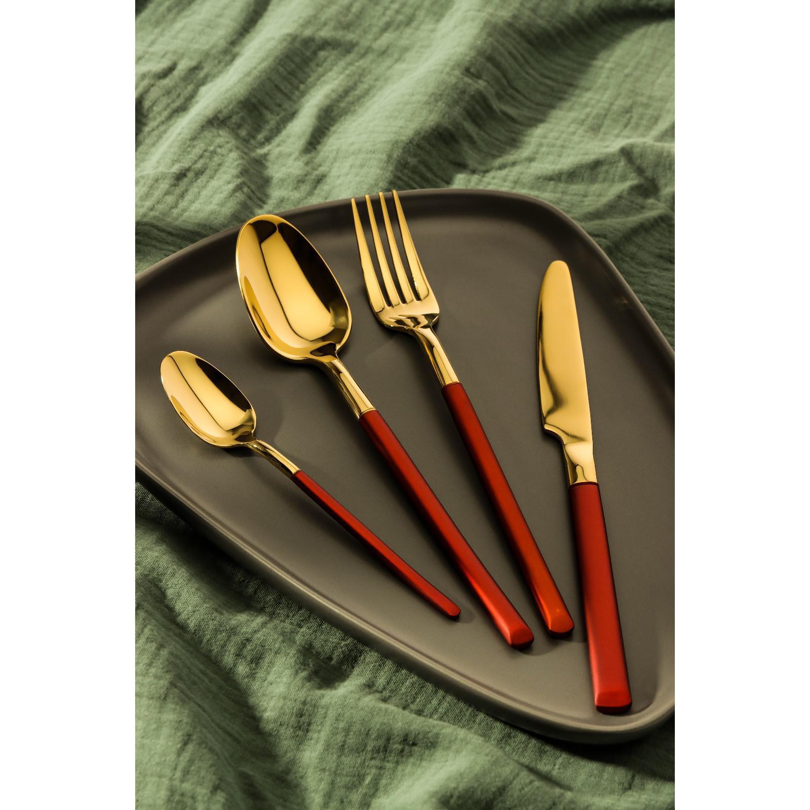 Набор столовых приборов Magistro «Версаль», 4 предмета, цвет металла золотой, красная ручка