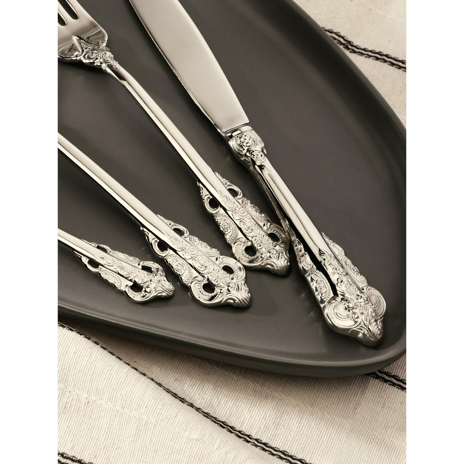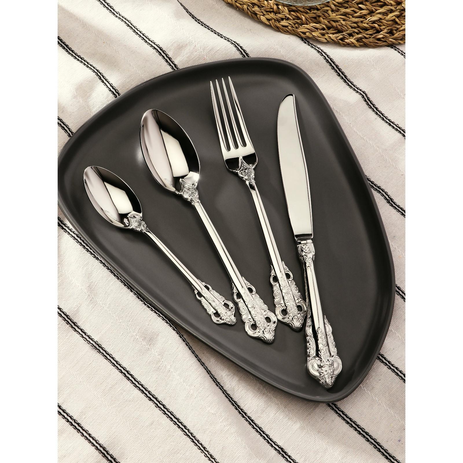 Этот набор столовых приборов добавит нотку изящества как повседневному, так и праздничному столу, так как имеют необычный дизайн. Каждый предмет гладко отполирован, а зеркальный блеск гармонично дополняет предмет. Отлично сбалансированы, удобно лежат в руке и приятны на ощупь.