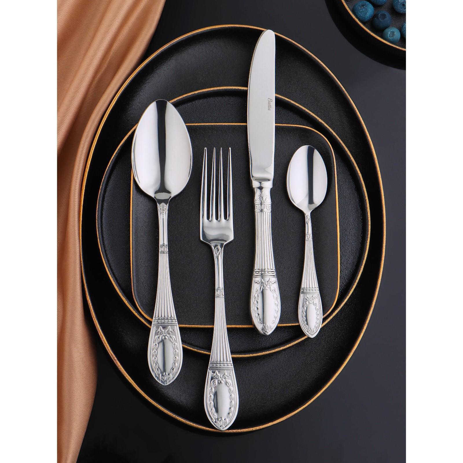 Элегантные столовые приборы «Беркли» изготовлены из пищевой нержавеющей стали. Высокое качество и безупречная полировка приборов обеспечит длительный срок службы и надежность в эксплуатации при сервировке стола. Благодаря изящному внешнему виду, эргономичной и удобной форме, они идеально подойдут как для сервировки праздничного стола, так и для ежедневного использования. Столовые приборы легко моются в посудомоечной машине.